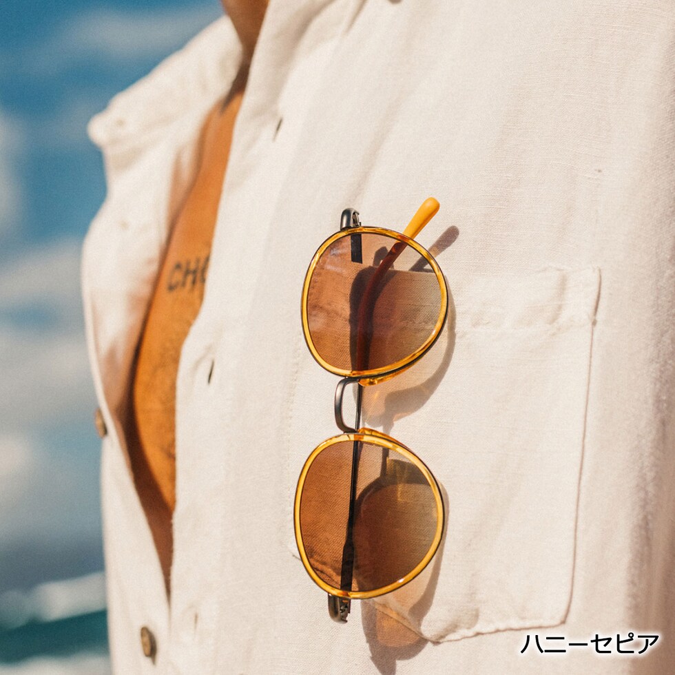 オリジナルデザインやフィット感を大切に、環境にも配慮し作られた『SUNSKI/サンスキー』の偏光サングラス。こちらは60年代のクラシックなP3フレームを現代風にアレンジしたモデル『Baia』。むき出しのメタルフレームには彫刻が施されており、シックな雰囲気を醸し出す他とは違う仕上がりに。ファスナー付きの専用ケースが付属され、いつでも持ち歩くことができアクセサリー感覚で着用を楽しめます。