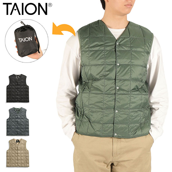 - > タイオン ダウンベスト メンズ レディース TAION インナーダウン Vネック ダウン ベスト 軽量 防寒 洗える ボタン アウター カジュアル BASIC LINE ベーシック Vネックボタン インナーダウンベスト TAION-001