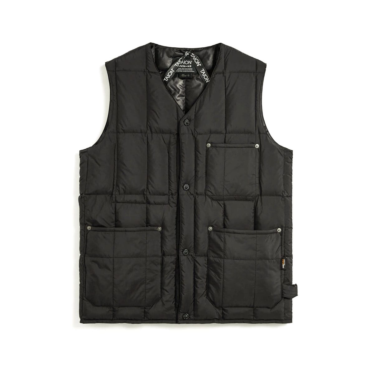- > タイオン ダウンベスト メンズ レディース TAION Vネック ダウン ベスト 軽量 防寒 洗える ボタン アウター カジュアル ブランド おしゃれ WORK LINE ワーク Vネックボタン ダウンベスト TAION-001BWK