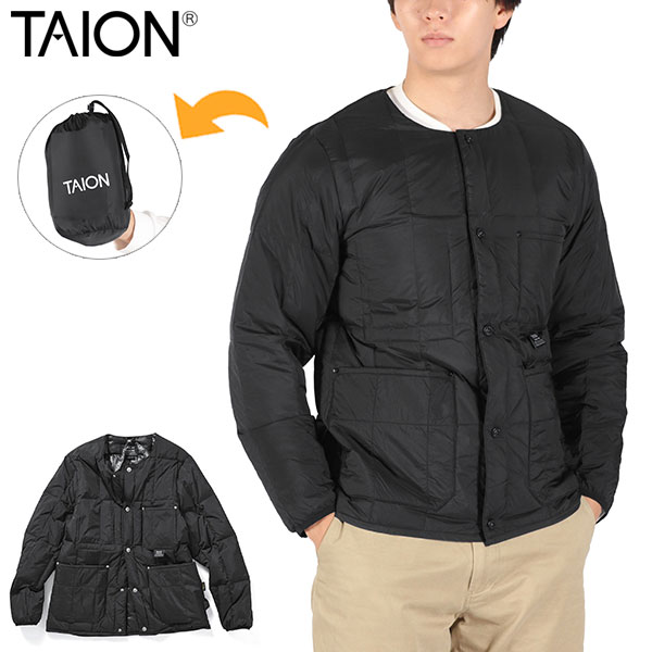 - > タイオン ダウンジャケット メンズ レディース 冬 TAION 暖かい 軽量 ブランド ダウン インナーダウン ナイロン 保温 防寒 丈夫 洗濯 洗える 軽い ボタン WORK LINE ワーク クルーネック ダウンジャケット TAION-104BWK