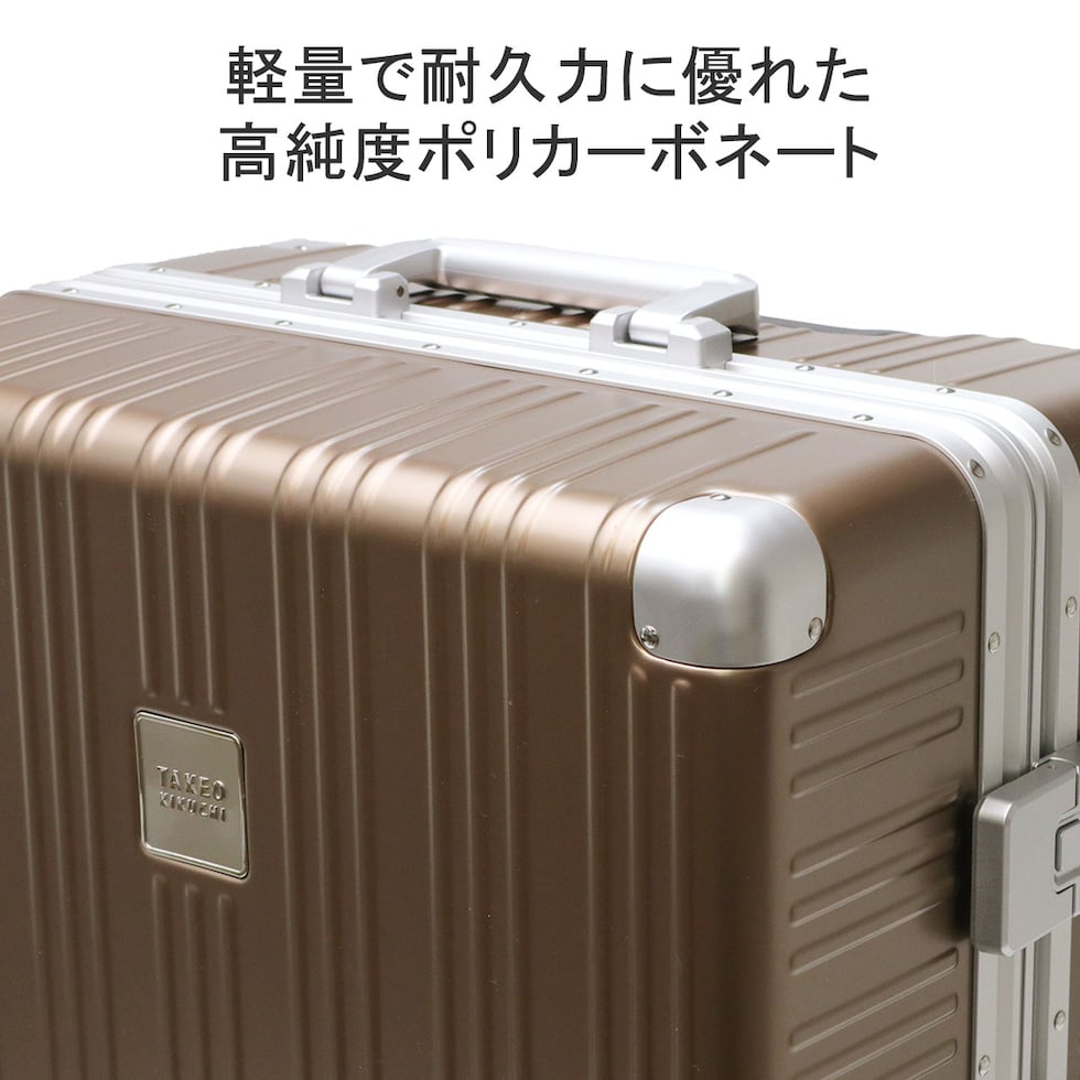 タケオキクチ スーツケース Mサイズ TAKEO KIKUCHI フレームタイプ 軽量 おしゃれ キャリーケース 65L 5泊 6泊 M 前開き ビジネス 出張 旅行 アルミフレーム TSA ダイヤルロック 静音 ハードケース DARJEELING DAJ003