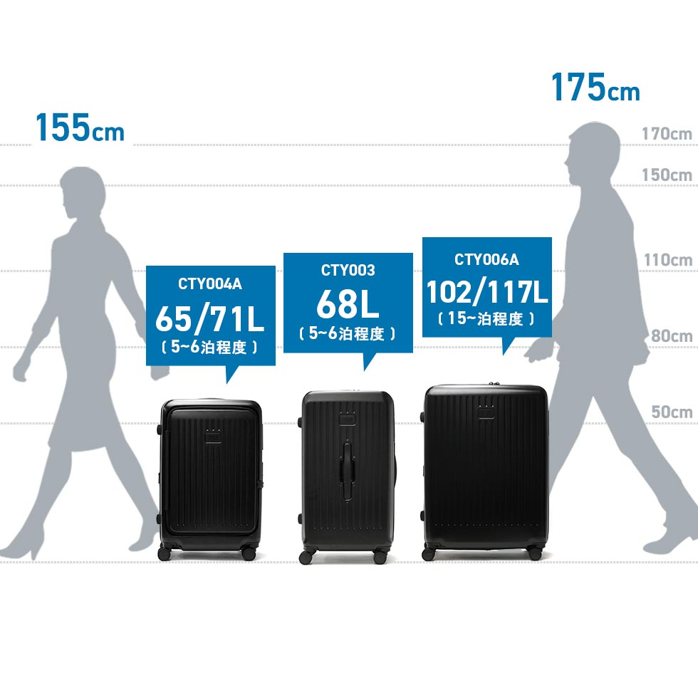 モダンで構築的なアーバンスタイルを意識した「CITY BLACK」シリーズのスーツケース。こちらは、15泊?の旅行に対応した長期滞在向けサイズ。増えてしまいがちな荷物のお悩みを解決してくれるエキスパンダブル機能を搭載し、拡張前は預け荷物最大サイズに収まる大きさ。充実の装備でトラベルシーンをサポートしてくれます。