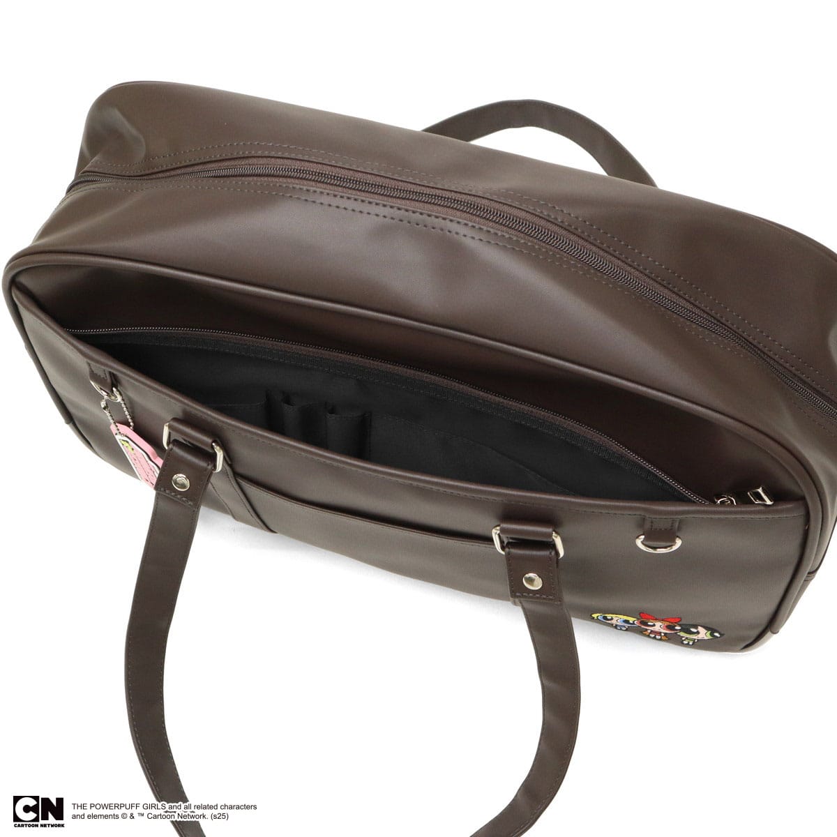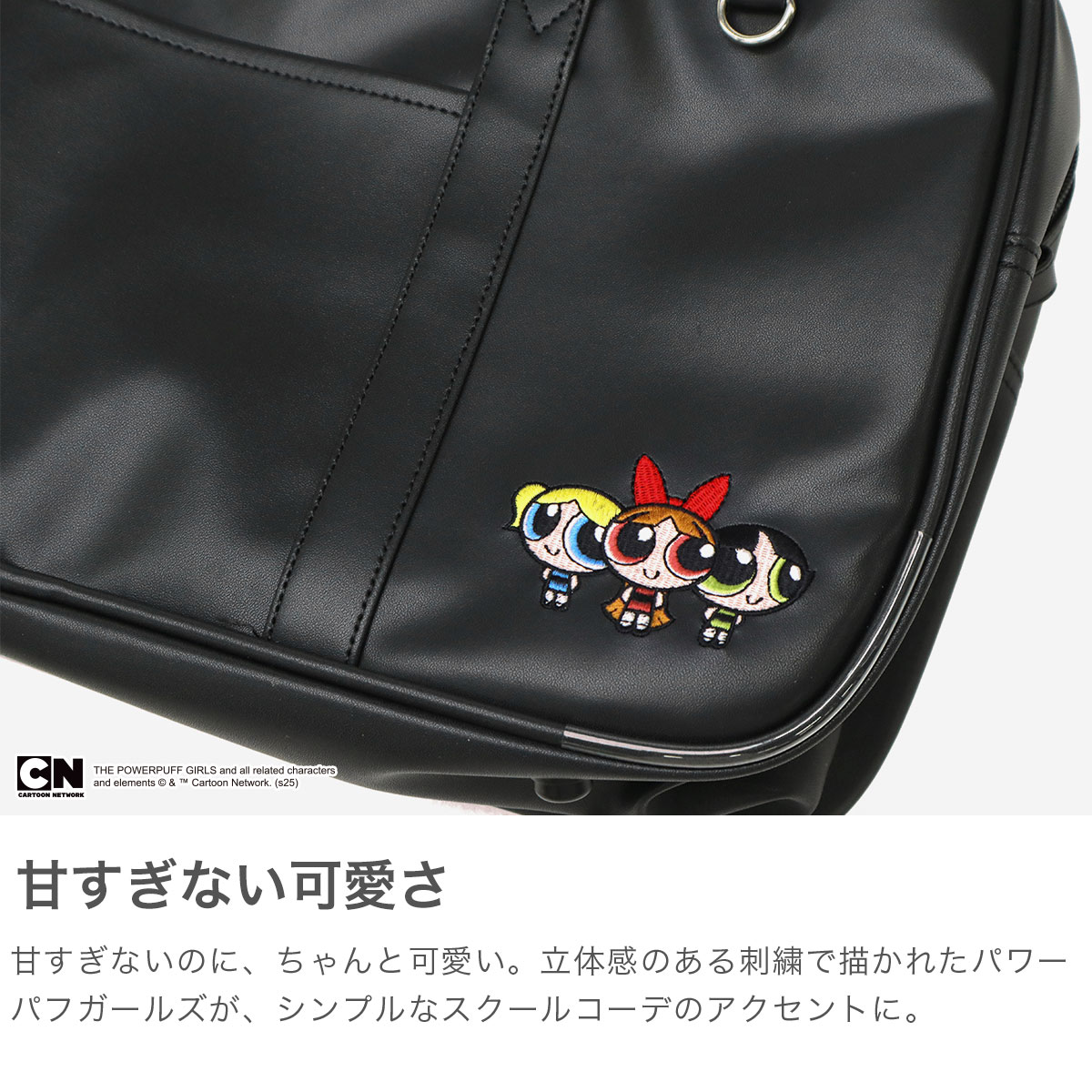 アメリカのカートゥーンネットワークで放送されたアニメ『パワーパフガールズ』のスクールバッグ。主人公のブロッサム、バブルス、バターカップの3姉妹の刺繍が施され、付属のかわいいロゴチャームがアクセントになった、可愛らしい仕上がり。どんな制服スタイルにも合うシンプルなスクールボストンで、A4サイズが収まるシンプルなつくりでありながら複数のポケットを完備し、しっかりと学校生活をサポートしてくれます。