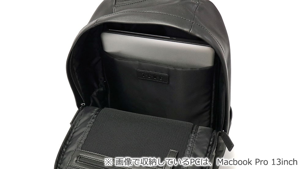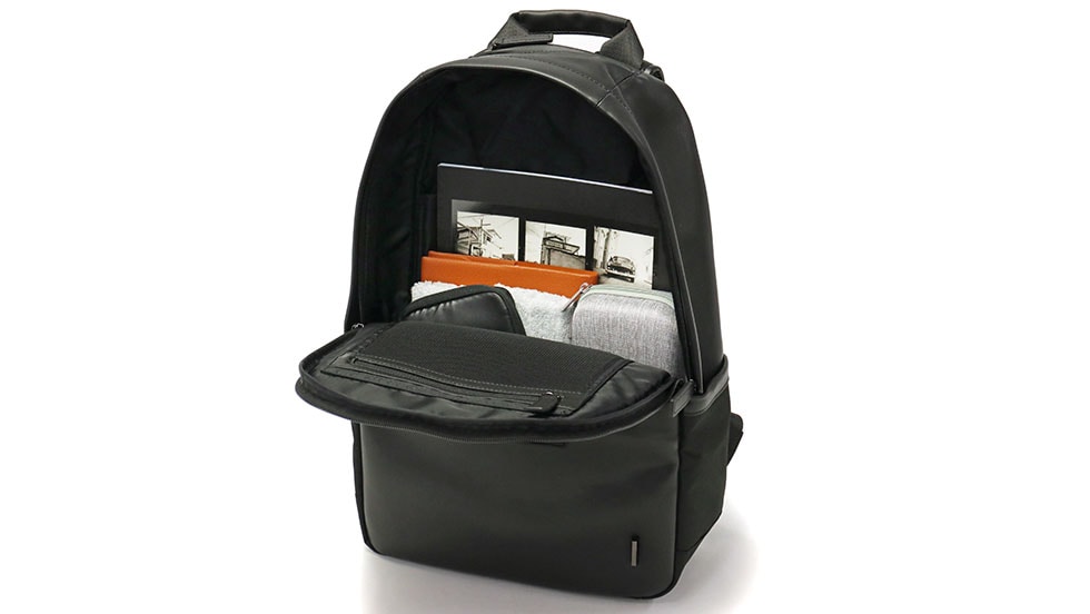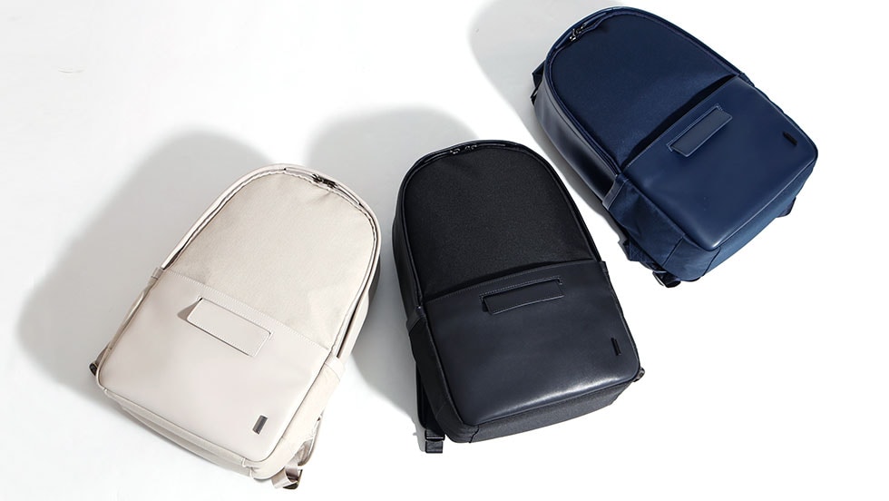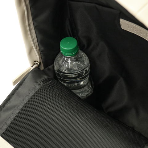メインルームはA4サイズに対応し、内装にはクッション性に優れたPC収納やボトルホルダーを完備。内外に複数のポケットを備え、小物もすっきりと収納可能です。プライベートからビジネスにもお使い頂けるサイズ感と機能性に仕上がっています。