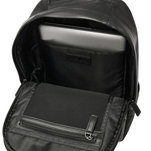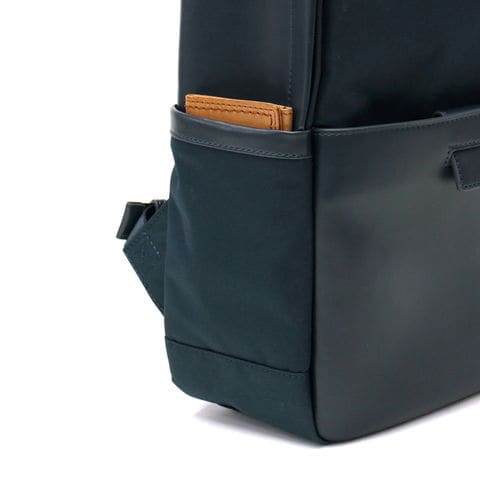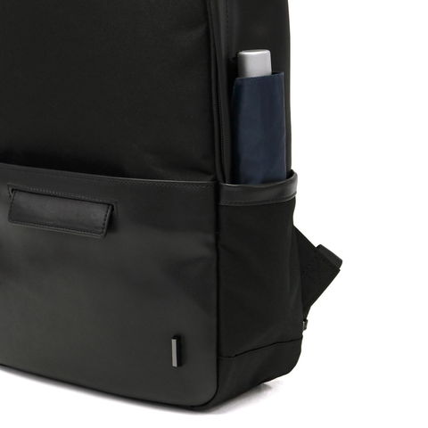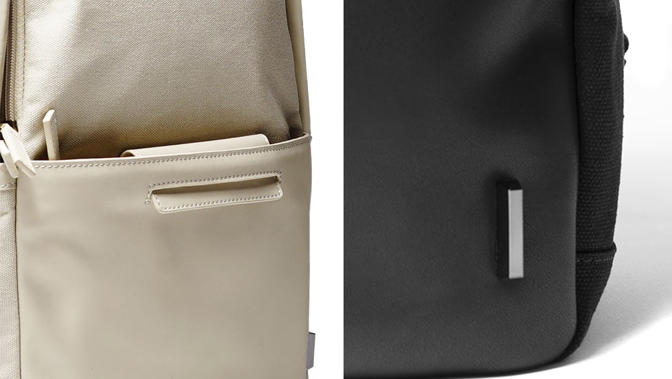 本体は撥水加工を施したキャンバスとレザーのコンビネーションで作られており、水をはじくため雨の日でも安心してお使い頂けます。異素材を組み合わせることでシンプルでありながら、他にない独特の風合いを生み、カジュアルさを持ちつつも高級感のあるデザインを実現しています。