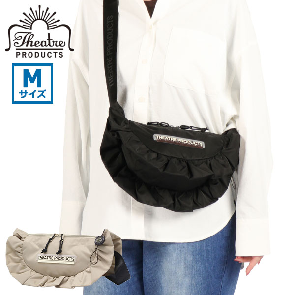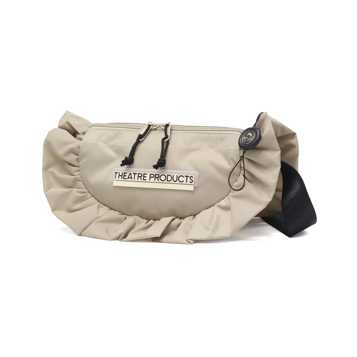 フリルデザインが女性らしく可愛らしい「THEATRE PRODUCTS」のMサイズショルダーバッグ。コンパクトなサイズ感でミニ財布やスマホなどを持ち歩くのにちょうどいい大きさ。上品で光沢感のあるナイロン素材にかわいいフリルをあしらった甘くなりすぎないカジュアルな印象のデザインが、コーデに華やかさをプラスしてくれます。