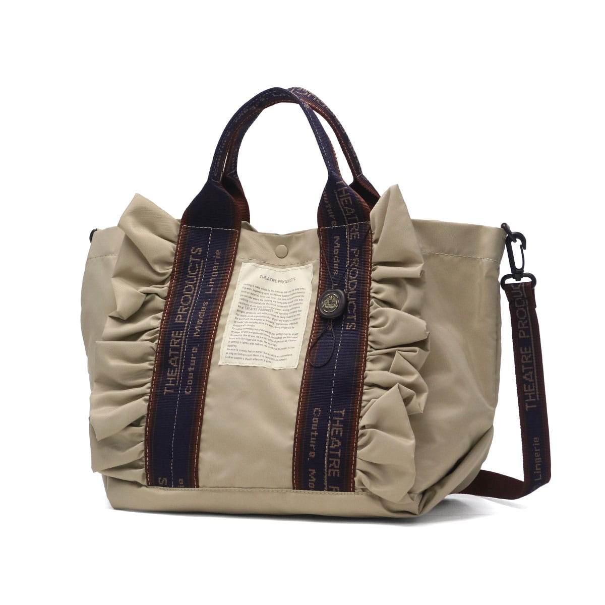 人気のトートシリーズから大きなフリルのついたモデルが登場。こちらはB5サイズが収まり普段使いしやすいLサイズトートバッグです。上品な光沢感のあるナイロン素材を使用し、甘くなりすぎずカジュアル感のある仕上がりに。取り外し可能なショルダーストラップが付き、気分やシーンに応じて2WAYでお楽しみいただけます。
