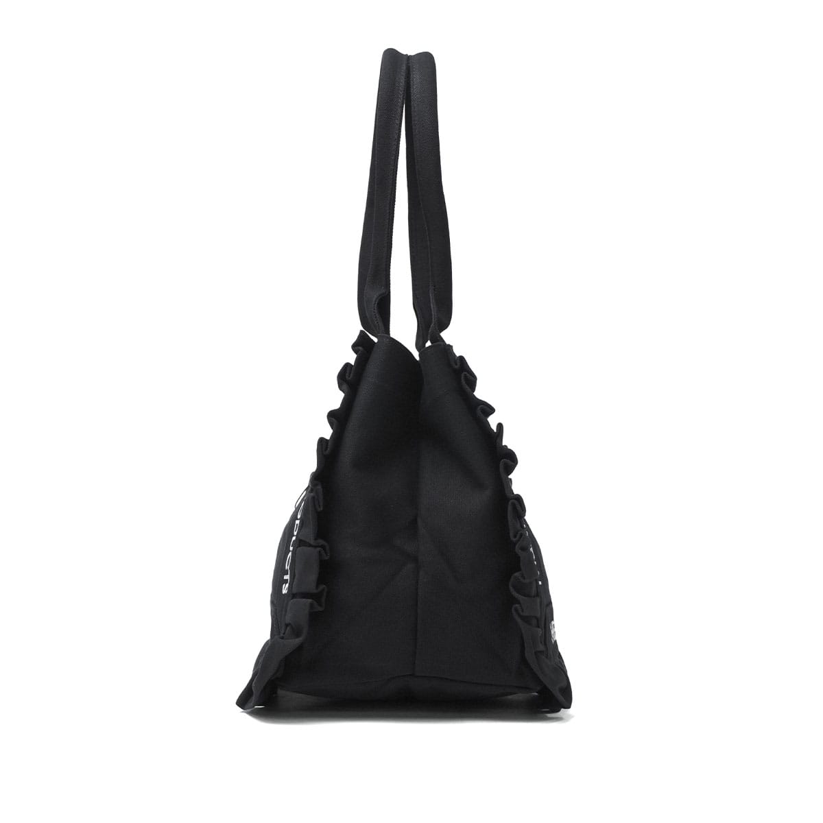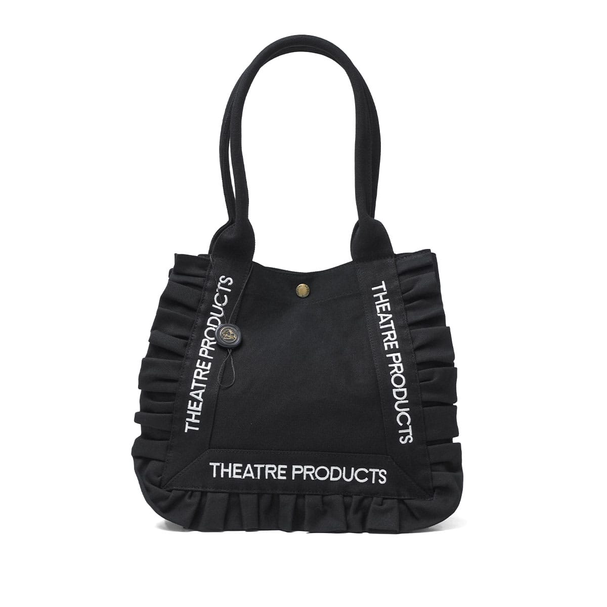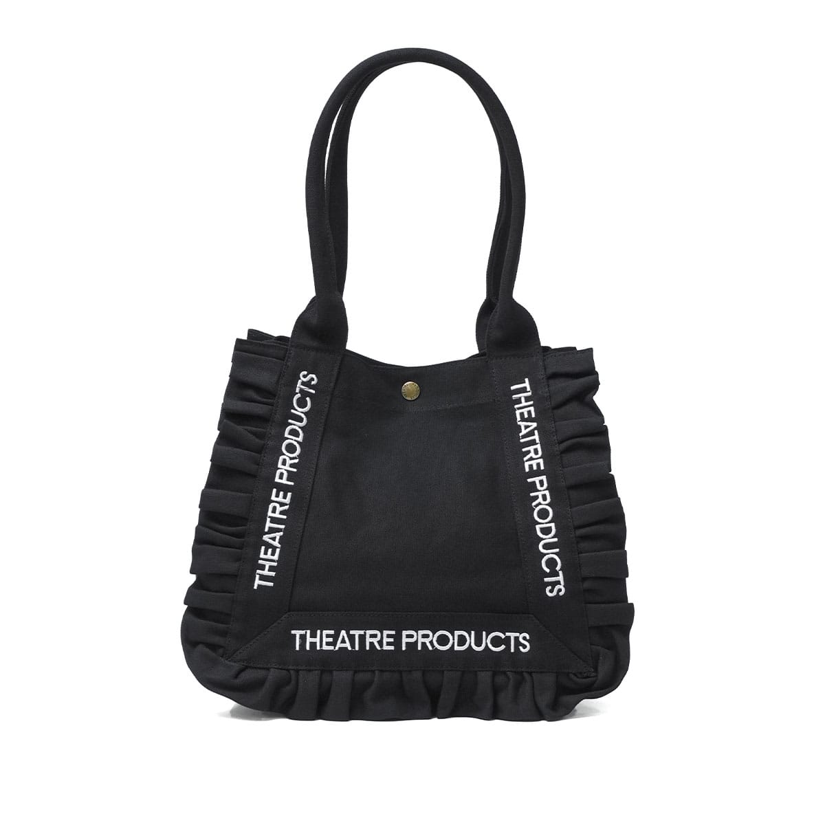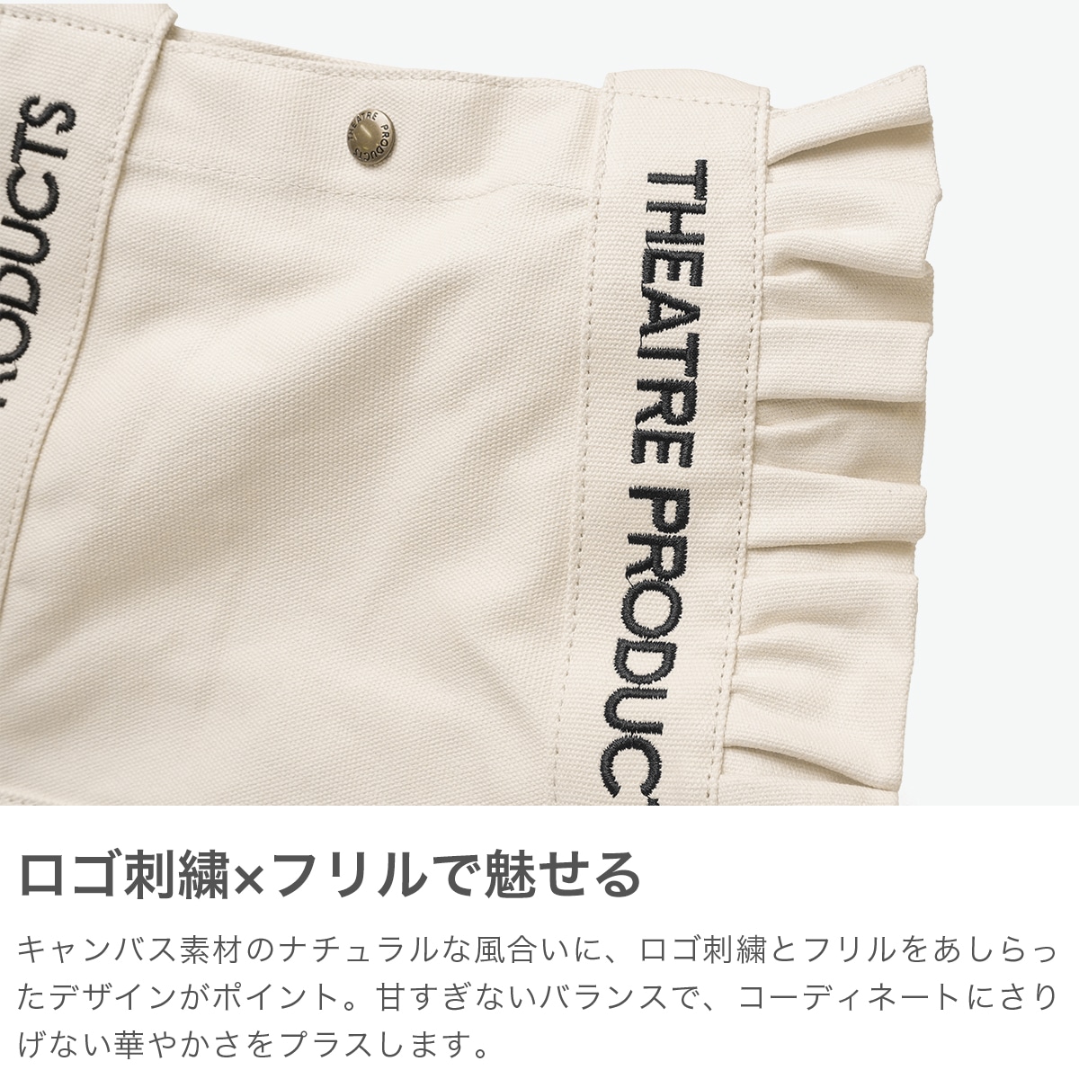 フェミニンなフリルデザインが目を惹く、THEATRE PRODUCTSのコットンフリルトートバッグのLサイズ。軽量なキャンバス素材で持ちやすく、B5サイズやペットボトルも収納できる実用的なサイズ感です。刺繍ロゴがさりげないアクセントに。マチ広めで荷物が整理しやすく、通勤やお出かけなどデイリーに活躍。カジュアルにもきれいめにも合わせやすい、大人可愛いアイテムです。