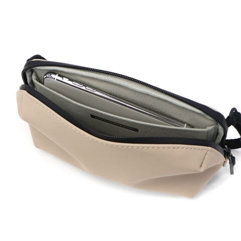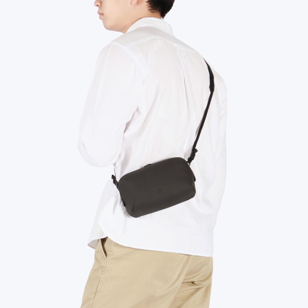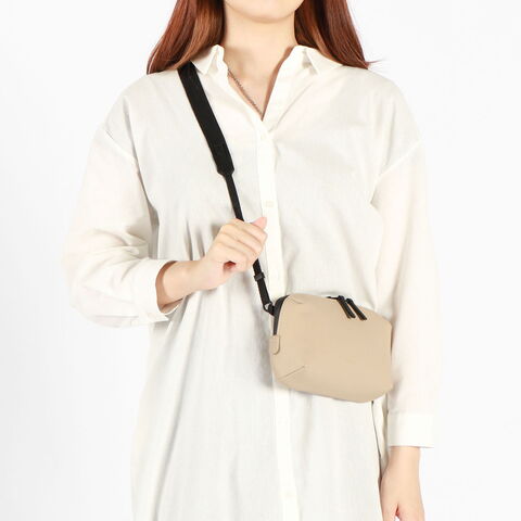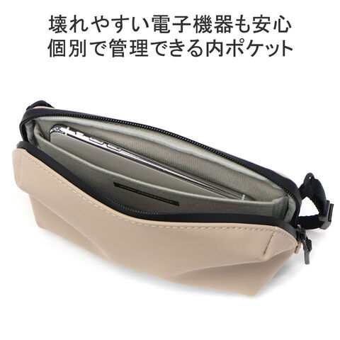 雨の日でも気軽にお出かけができる、防水性に長けたミニショルダーバッグ。メイン素材には、ソフトな感触でエレガントな装いのヴィーガン・テックを使用し、高い防水機能が備わっています。メインコンパートメントは、スマホ・鍵・現金と必要最低限のものだけを収納できるコンパクトなサイズ設計。雨の侵入を防ぐ撥水ファスナーも施され、大切な電子機器を濡らすことなく持ち運べます。