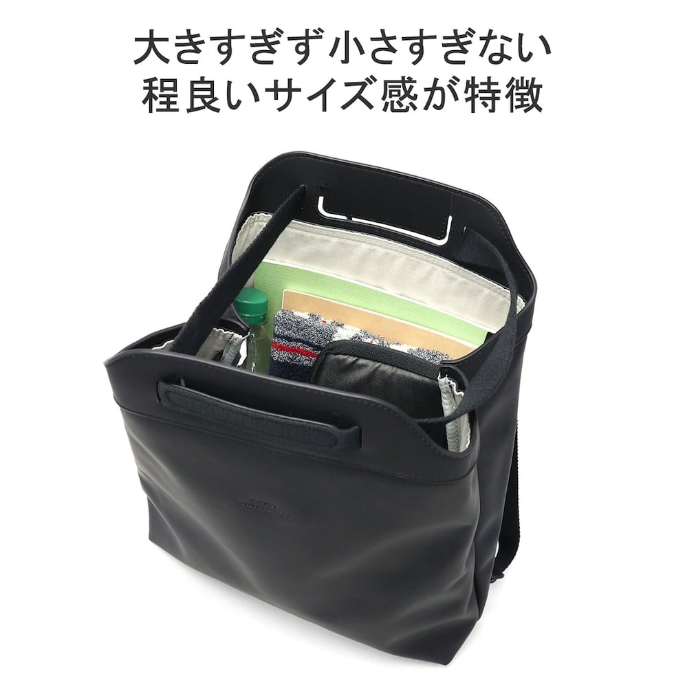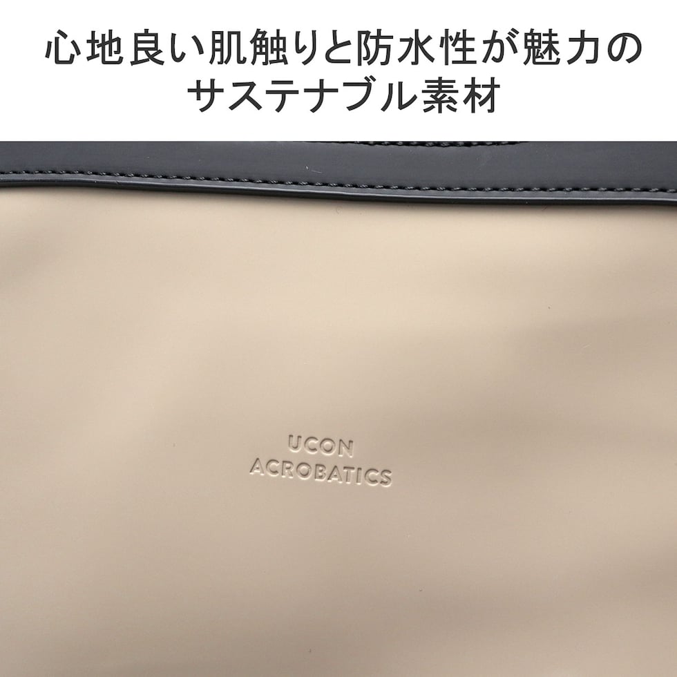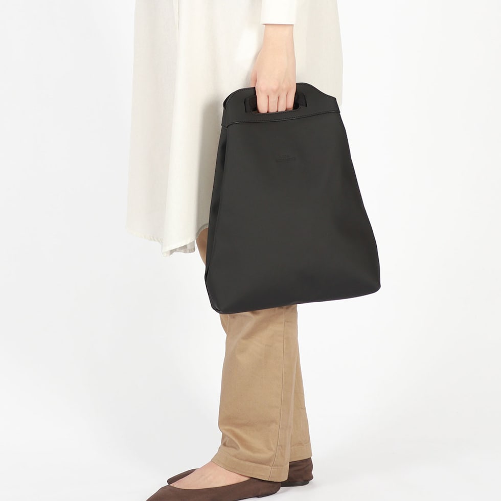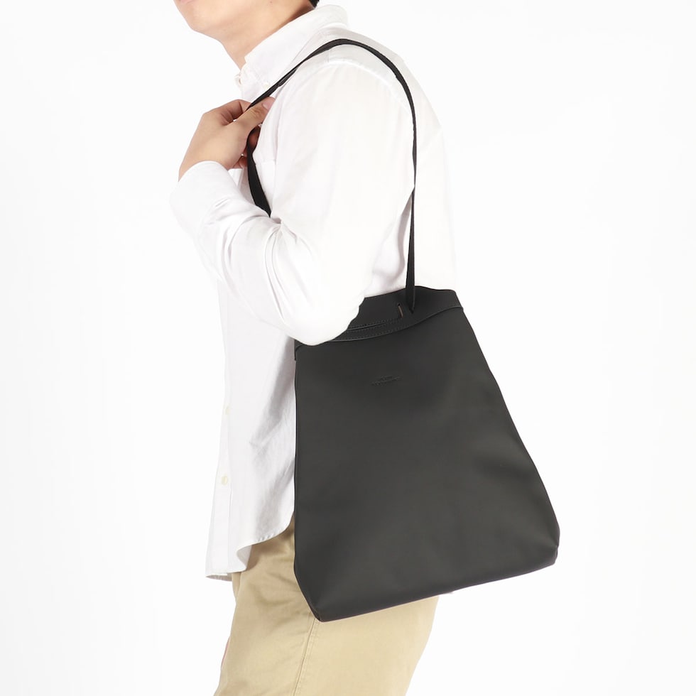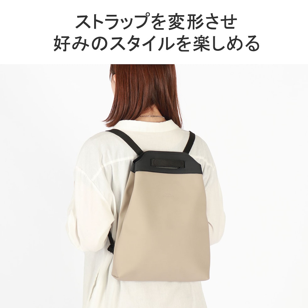 ストラップを変形させてバックパック、ショルダー、ハンドバッグの3WAYで使用可能なフレキシブルなデザインがポイントのバッグ。内側にはスマホや鍵などの収納に便利なポケットを装備し、使い心地の良さにも配慮。また、素材にはソフトな感触でエレガントな装いのヴィーガン・テックを使用しています。頼もしい防水機能も備わっており、ビジネスシーン、タウンユースだけでなくフェスや旅行といったアクティブなレジャーシーンでの活躍も期待できます。