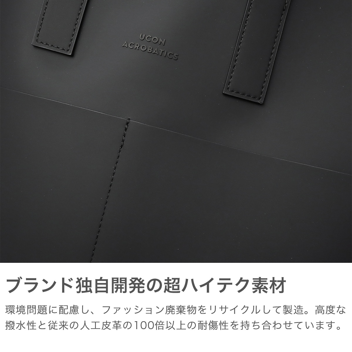 繊維くずをリサイクルして作られた超耐久ハイテク素材を使用した『Lotus Infinity』シリーズ。こちらはB4対応の大容量トートバッグです。軽量で耐久性に優れたヴィーガン素材を使用し、防水・撥水加工で雨の日も安心。縦型シルエットと洗練されたデザインで、男女問わず通勤や旅行に最適なアイテムです。