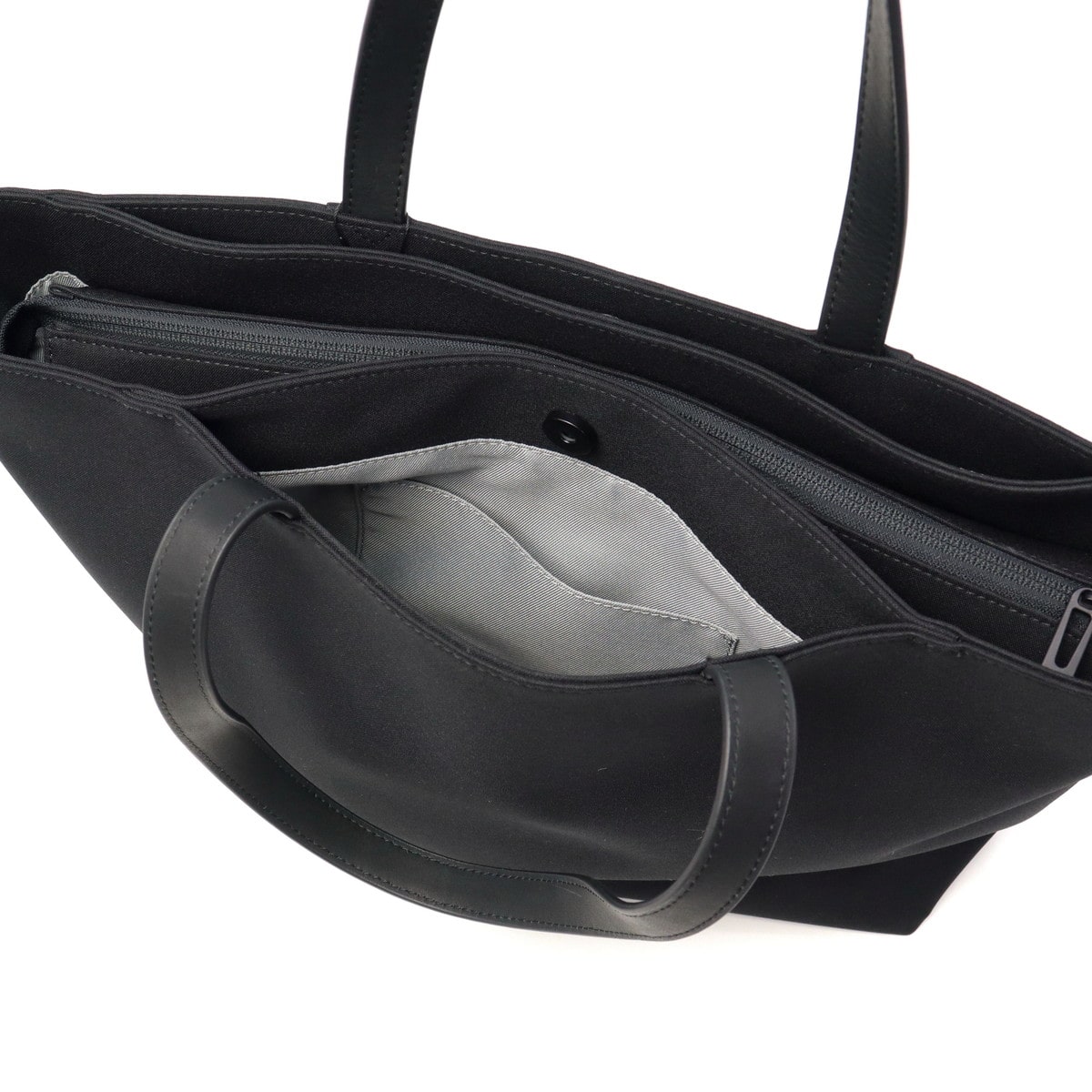 スーツやジャケットに使用される生地に特殊加工を施したマットな見た目が特徴の『TORO2』シリーズの横型トートバッグ。前面には斜めに配置されたファスナーポケットを配置し、背面は装飾のないよりシンプルなデザイン。ビジネスシーンでも使いやすくカジュアルにもフィット。撥水加工が施されているので、雨や雪の日でも安心してご使用頂けるアイテムです。