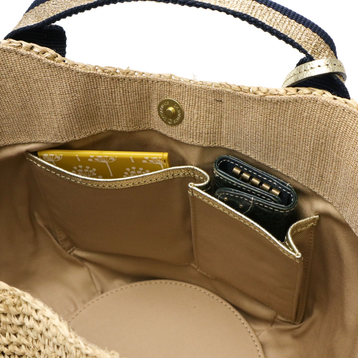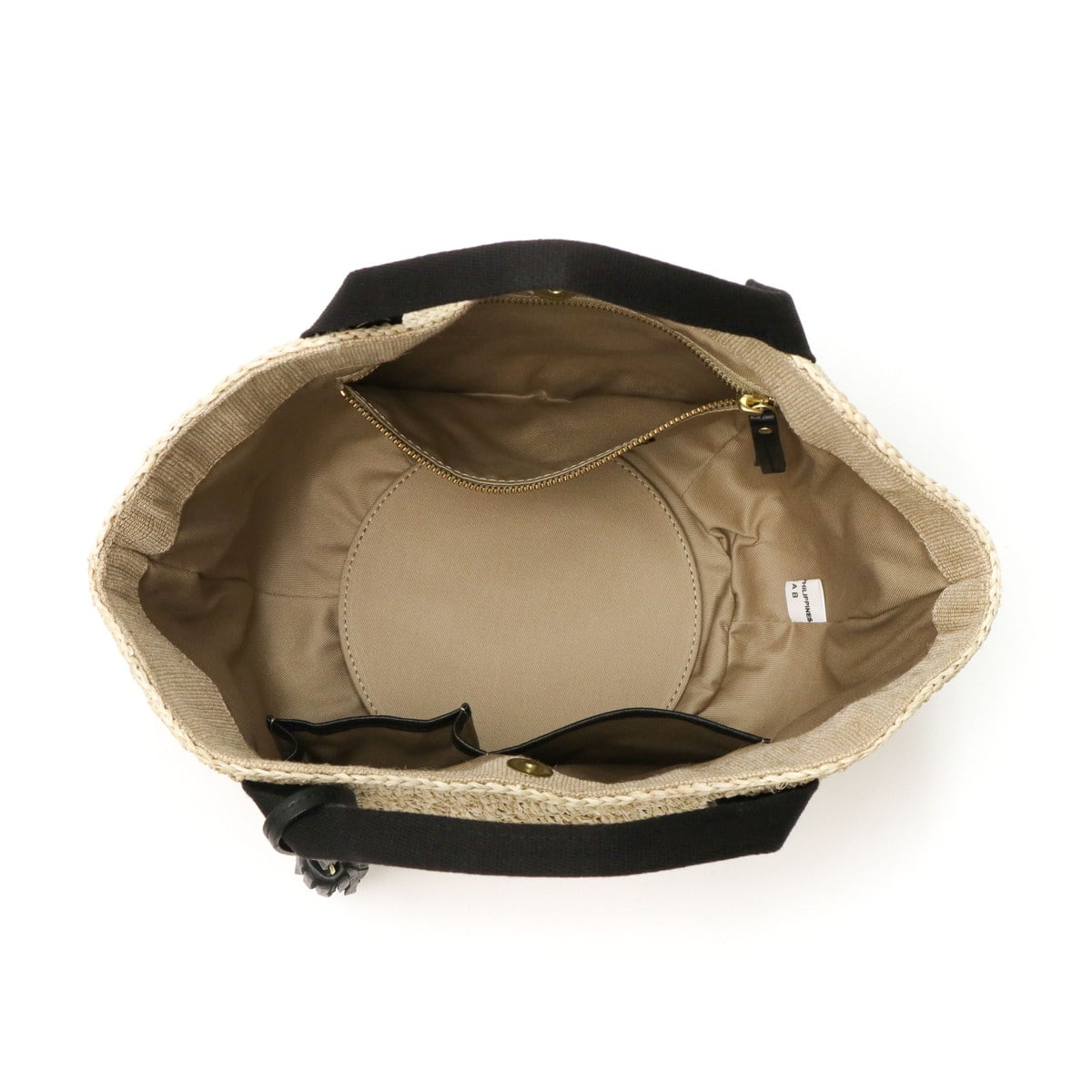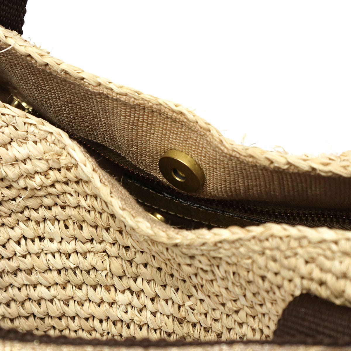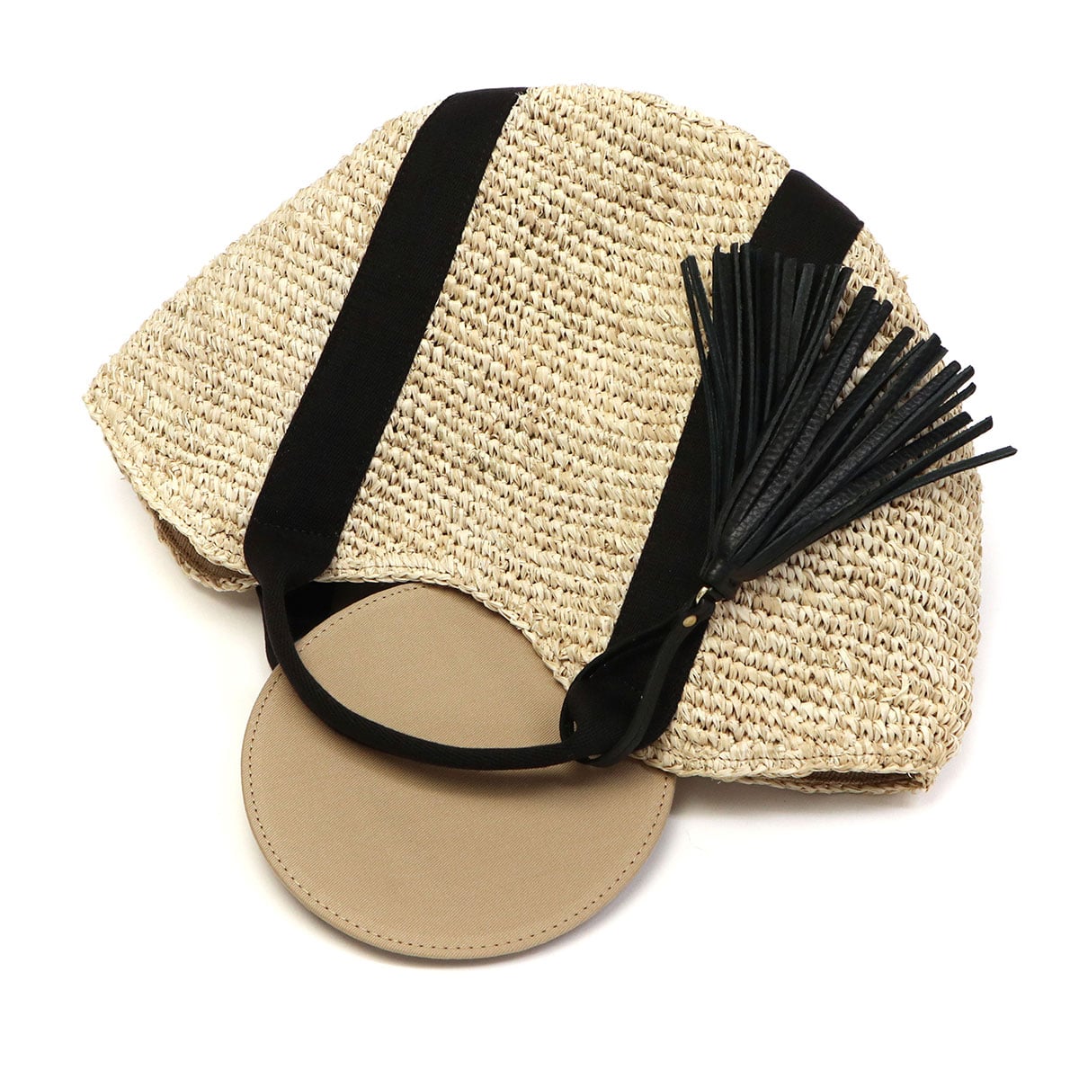 ラフィアで編み上げたボディにテープのハンドルがアクセントになったカゴバッグ。天然素材のカジュアル感がありながらもフェミニンな印象のルックスと、上品に揺れるタッセルが魅力的です。ルックスだけでなく、利便性、収納力にも優れているので、幅広いシーンでお使い頂けます。