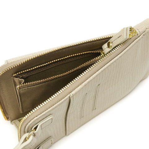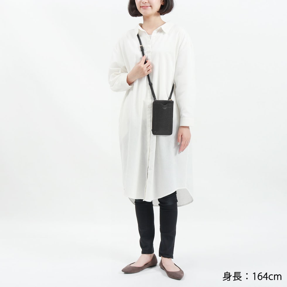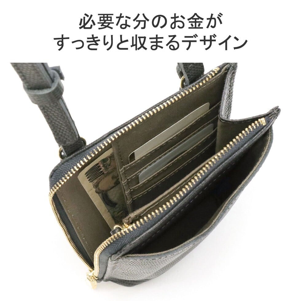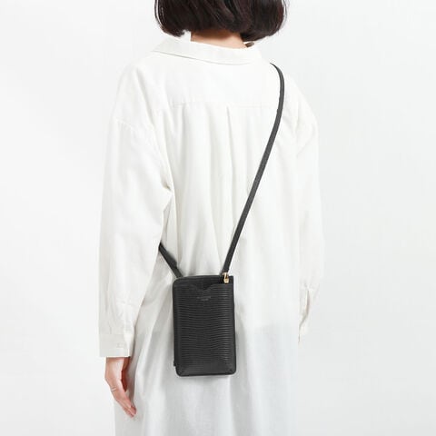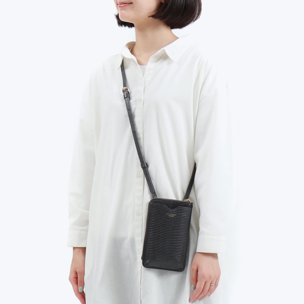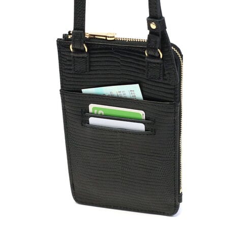 リザードの型押しがスタイリッシュな印象を演出するポシェット。スマートフォンケースと財布が一体になったつくりで、普段のちょっとした外出からトラベルシーンまで幅広く活躍します。必需品を身軽に持ち運べる使い勝手の良さで、外出時に手放せないアイテムになりそうです。