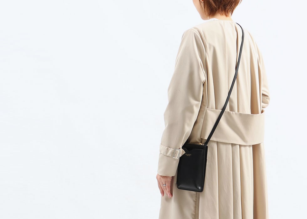 上品な雰囲気を纏ったなめらかなレザー風合いが魅力のポシェット。スマートフォンケースとお財布が一体になったつくりになっており、普段のちょっとしたお出掛けからトラベルシーンまで幅広く活躍するアイテムに仕上がっています。豊富なカラーバリエーションからお気に入りを選ぶことができるのもポイント。