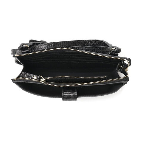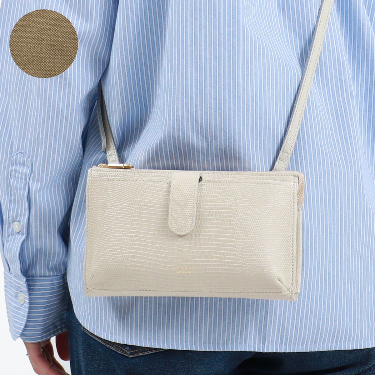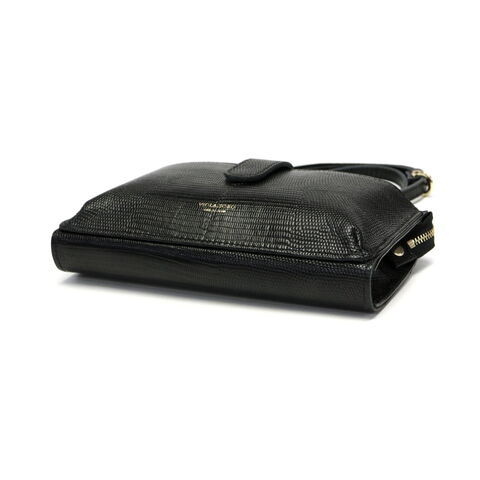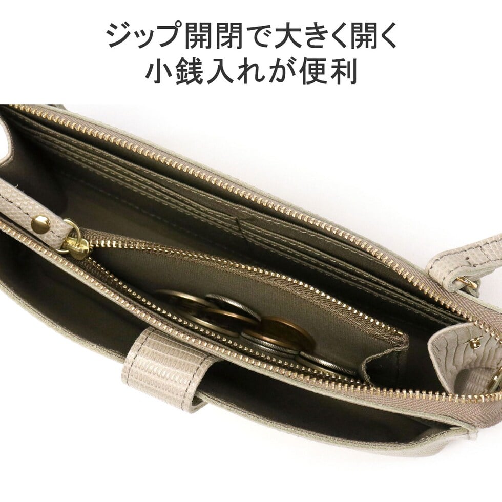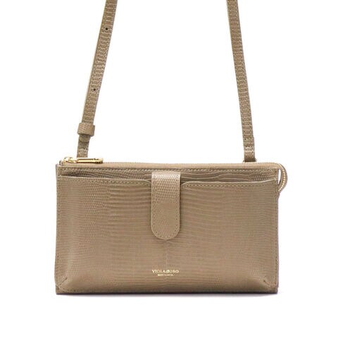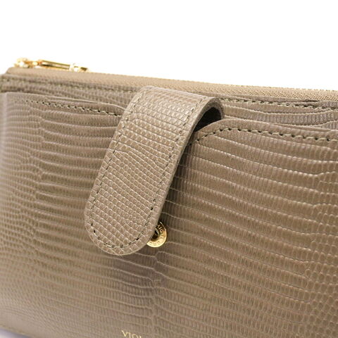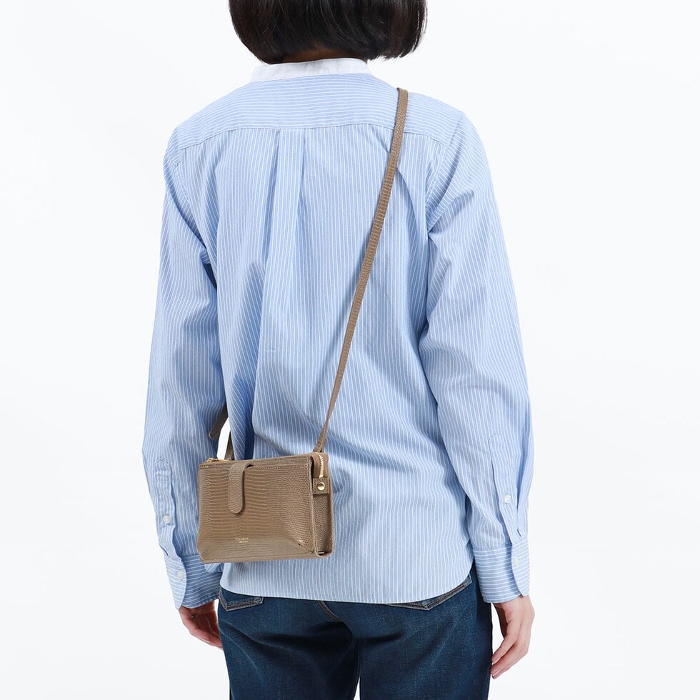 リザードの型押しレザーが女性らしい、横型のスマホポシェット。スマホケースと財布、両方の役割を一体化した便利な設計で、ちょっとした外出や旅行時に活躍します。メインルームはマチ幅の広いスペースを完備し、紙幣や小銭だけでなくコスメや小物の収納にも対応するマルチなつくりに仕上がりました。