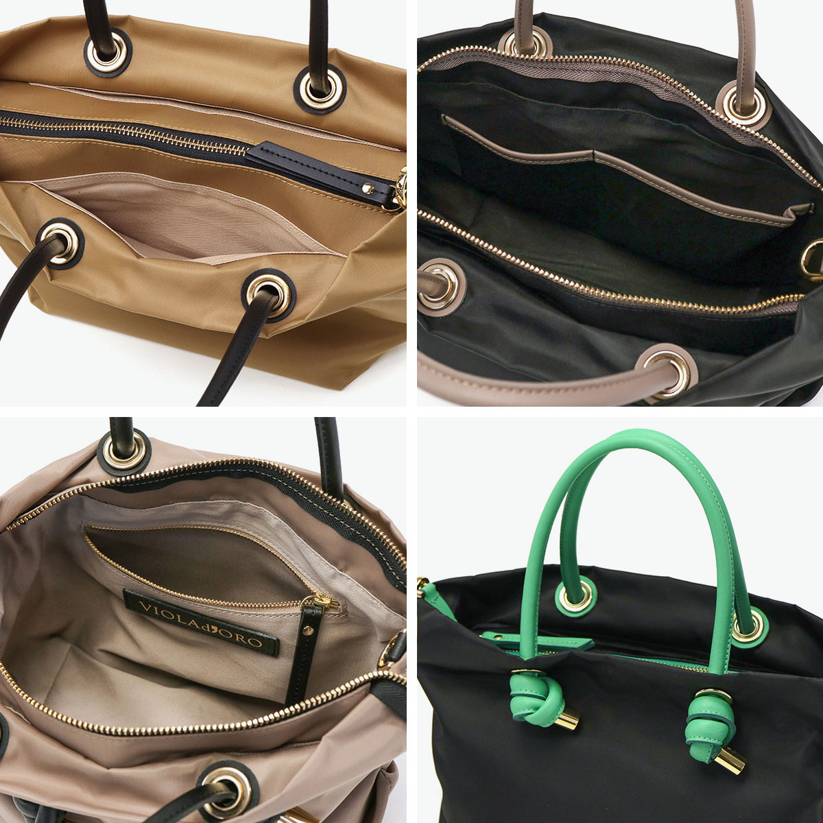 【正規品】ヴィオラドーロ トートバッグ VIOLAd'ORO レディース ファスナー付き バッグ ビアンカ トート ブランド 撥水 軽量 ナイロン ショルダー S A5 日本製 BIANCA ノットハンドルナイロントートS