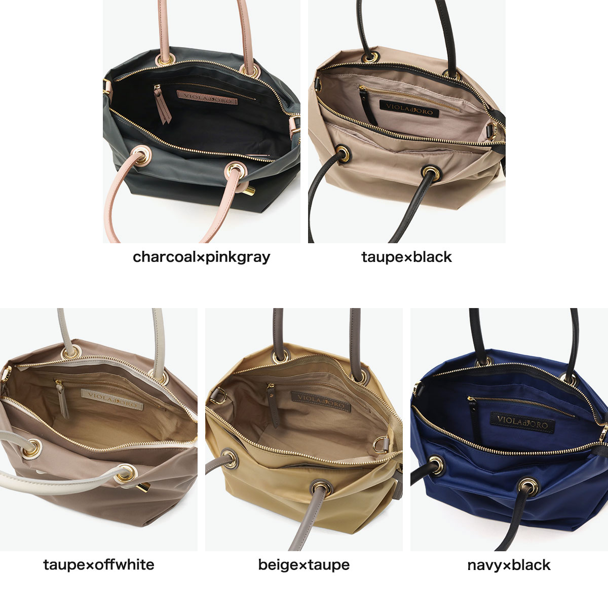 カラーblack×black、black×kellygreen、black×taupe、black×denim、charcoal×pinkgray、taupe×black、taupe×offwhite、beige×taupe、navy×black