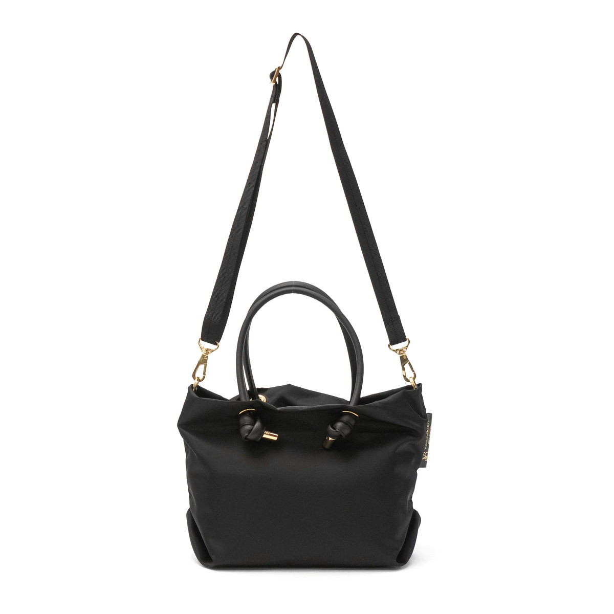 シンプルなデザインのボディにノットハンドルがアクセントになった『BIANCA』のSサイズ2WAYトートバッグ。本体は、長財布や300mlペットボトルなどが収納できるサイズ感。また、収納部の両側に設けたあおりポケットには、サッと取り出したいアイテムを収納するのに最適です。機織りからコーティングまで製造を国内で生産しているこだわりのナイロンを使用。光沢感を抑えたマットな質感は高級感があり、大人女性が持ちやすい仕上がりに。軽量かつ撥水性があるためお手入れしやすく、気兼ねなくお使いいただけるところもポイントです。