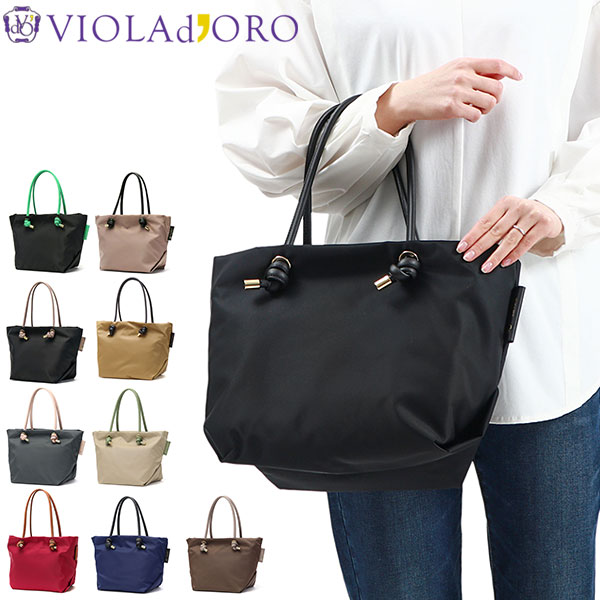 - > 【正規品】 ヴィオラドーロ トートバッグ レディース 大きめ ファスナー付き VIOLAd'ORO バッグ おしゃれ かわいい ナイロン 通勤 ブランド 軽量 B5 旅行 横 撥水 上品 BIANCA ノットハンドルナイロントートM V-2175