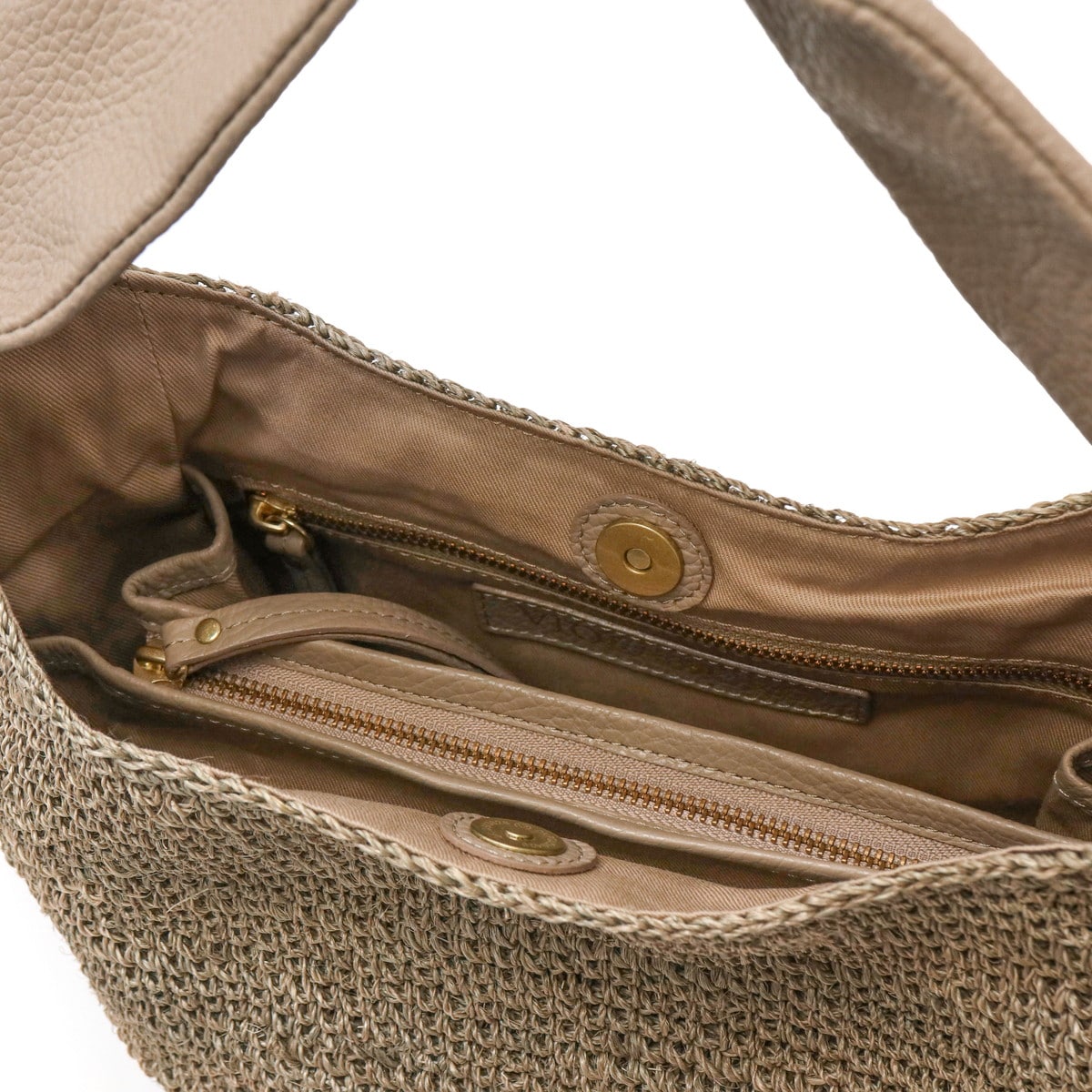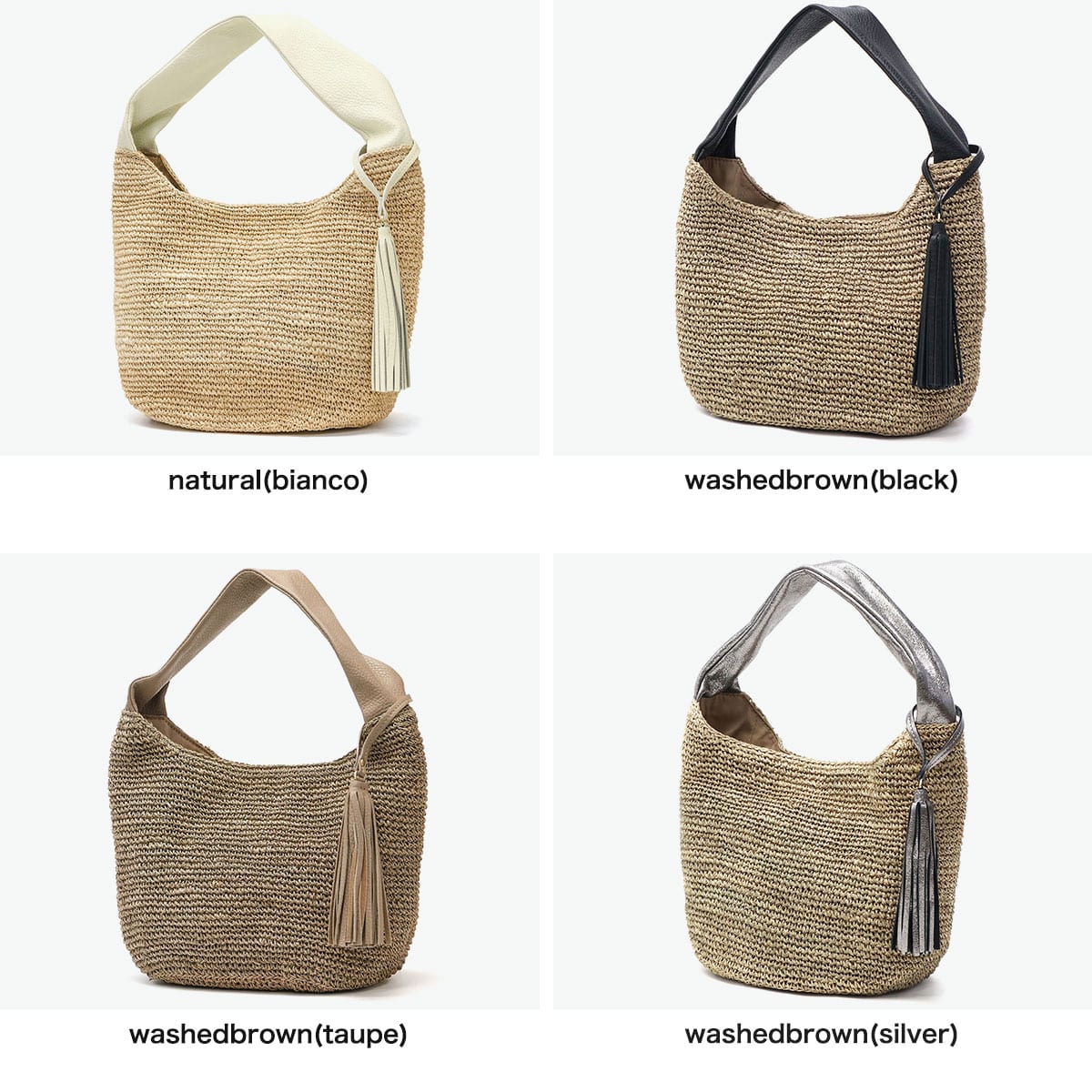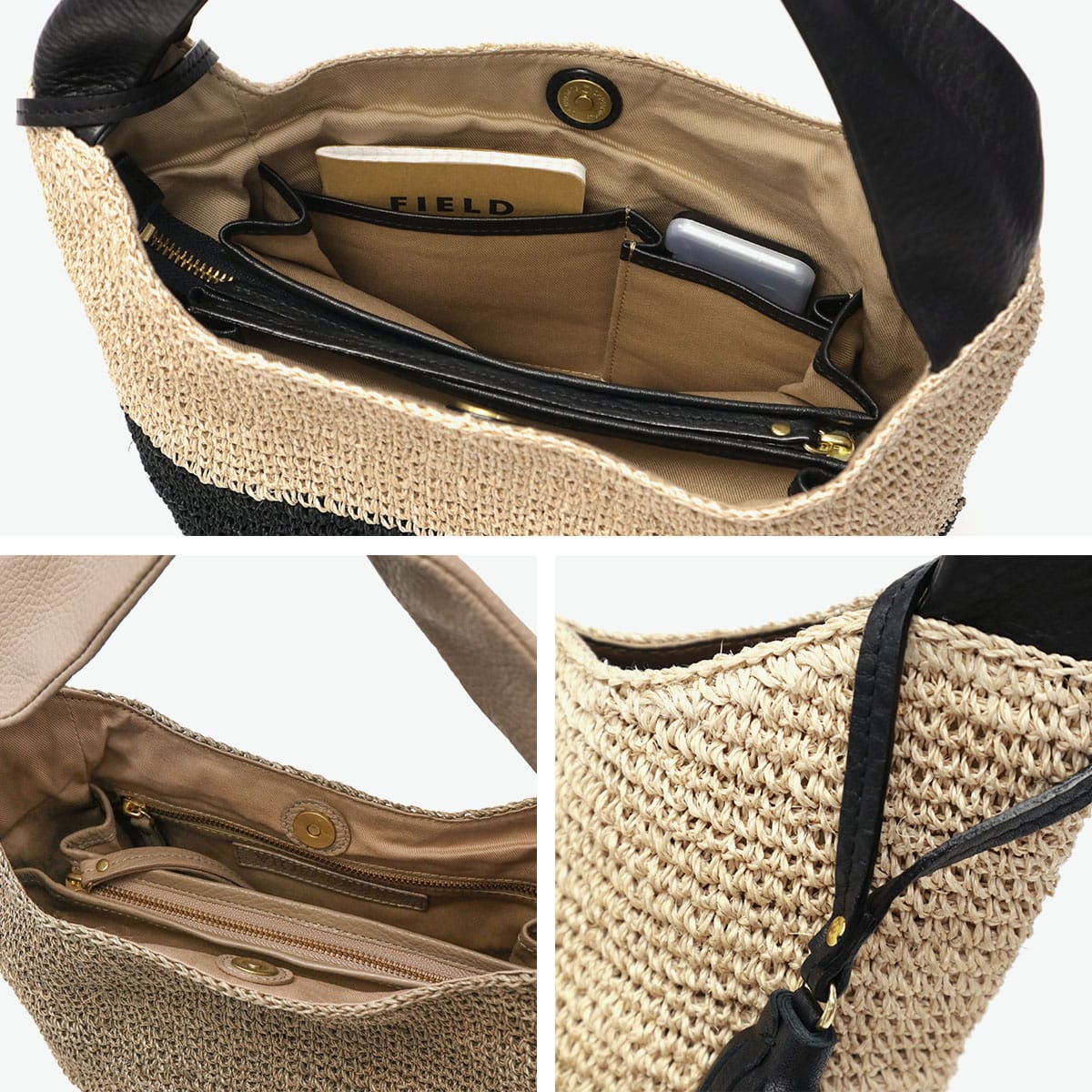 上質なアバカで編み上げたシンプルなワンショルダーカゴバッグです。しなやかなレザーハンドルは手馴染みも良く、上品な雰囲気を演出。小ぶりながら長財布やポーチなど、身の回りのものがしっかり入る収納力を備えています。内装にはファスナー付きの仕切りがあり、整理整頓しやすいつくりとなっています。