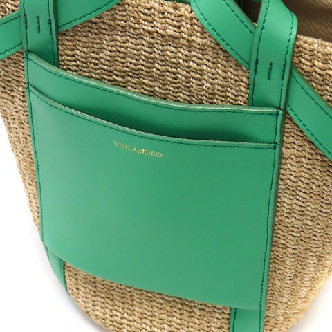 正規品 ヴィオラドーロ かごバッグ VIOLAd'ORO トートバッグ MIRO アバカ製 レザーポケットトート ミロ トート バッグ 小さい コンパクト ミニ 軽量 ハンドバッグ バスケット 本革 春 夏 レディース V-8593