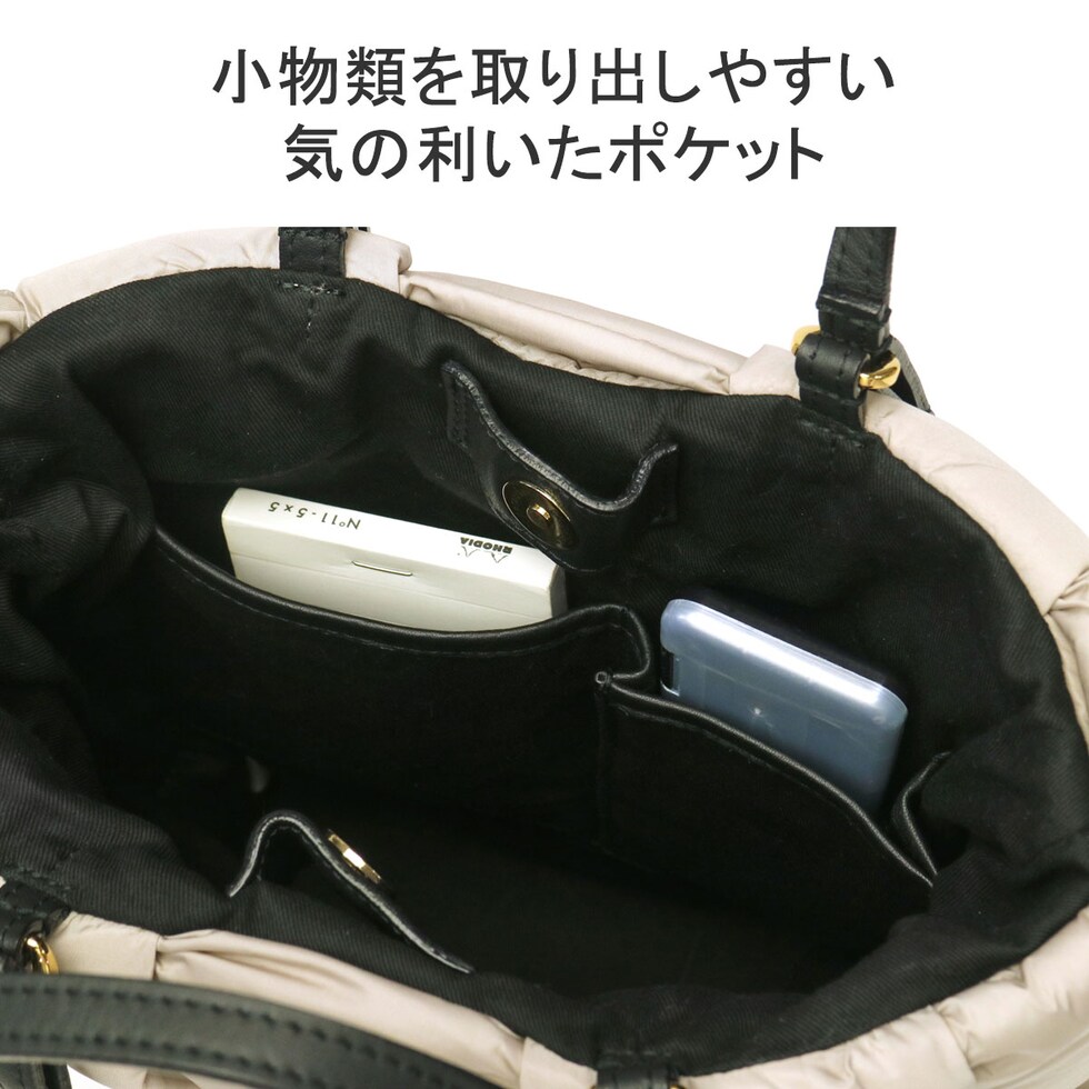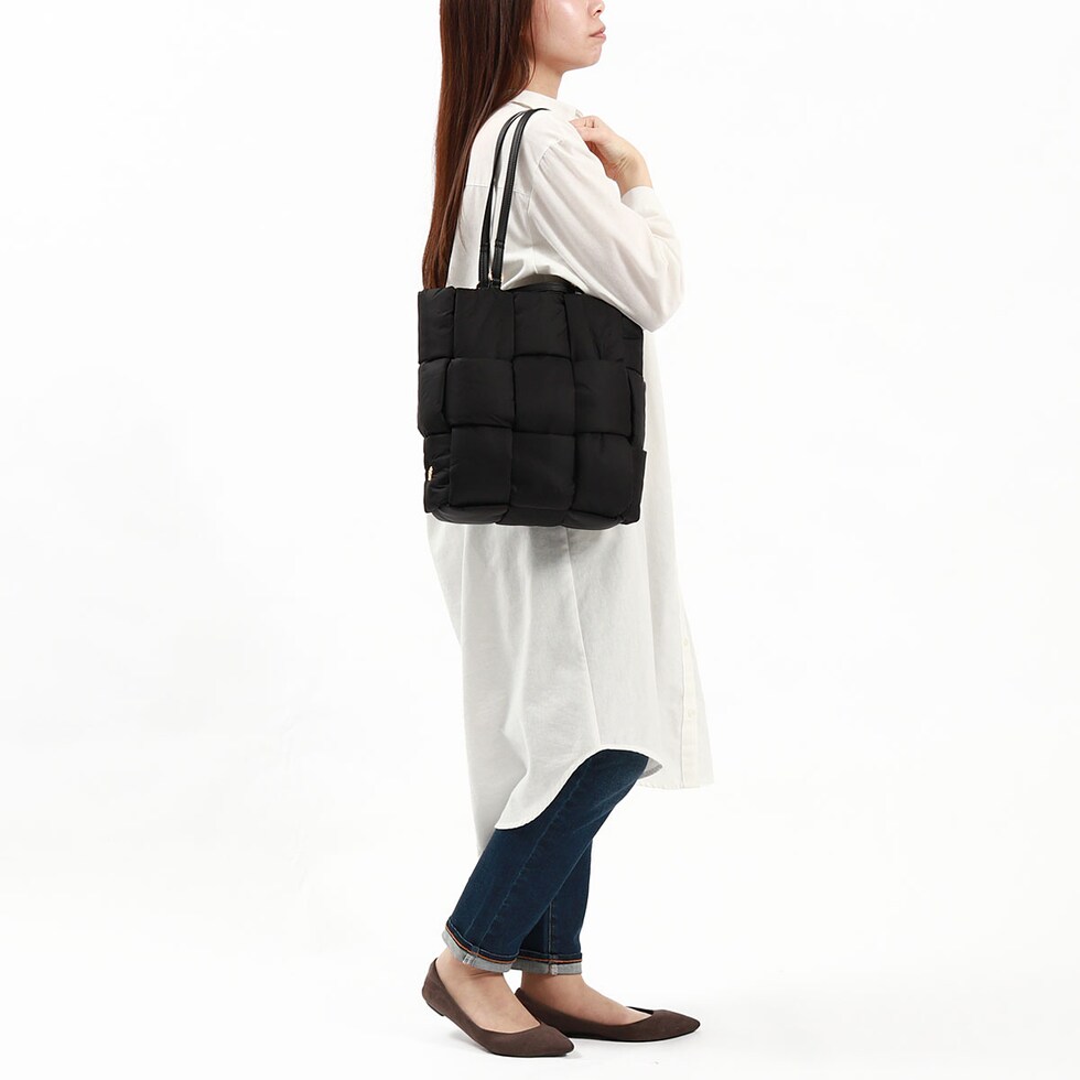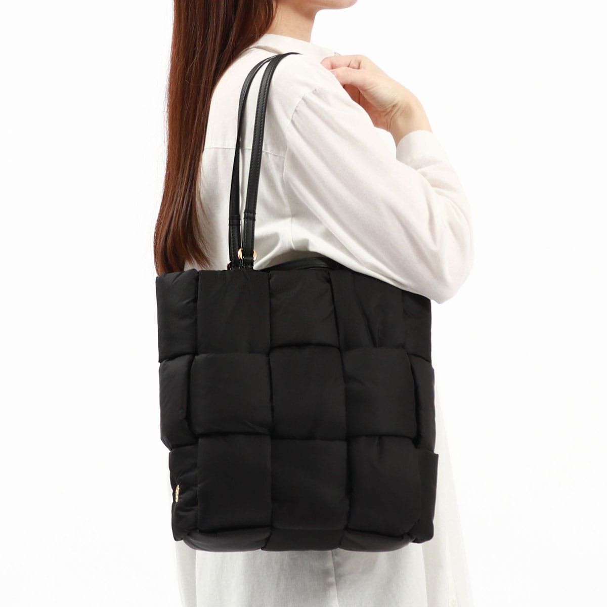 テープ状のボンディングナイロンを組み合わせたメッシュトート。思わず触りたくなるような、ふんわりとしたソフトな質感が魅力です。カジュアル感のある素材ながらも、レザーやゴールドのパーツをあしらうことで上品な印象に仕上げています。長さの異なるハンドル付きなので、シーンやコーデに合わせて持ち方を変えることが可能。長財布や500mlペットボトルなどがすっぽりと入るサイズ感で、デイリーに使いやすいアイテムです。