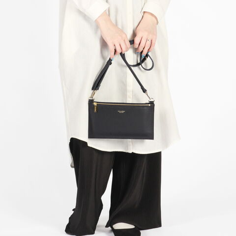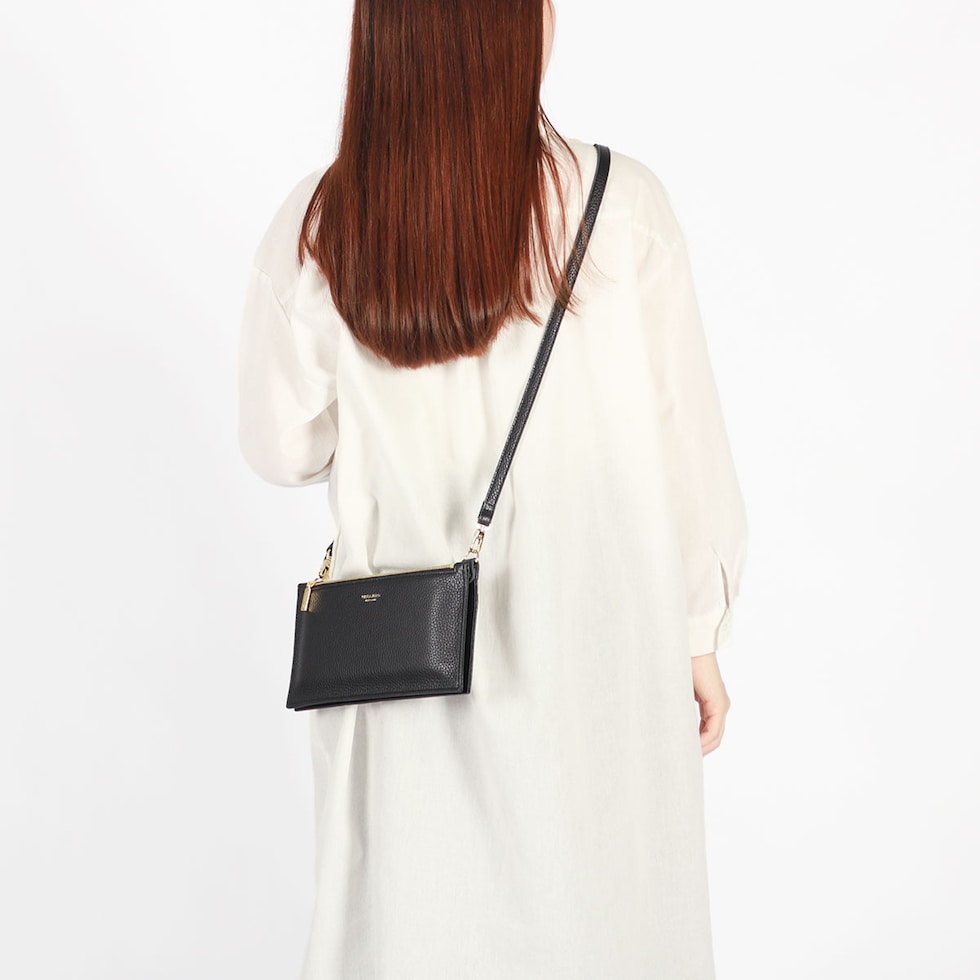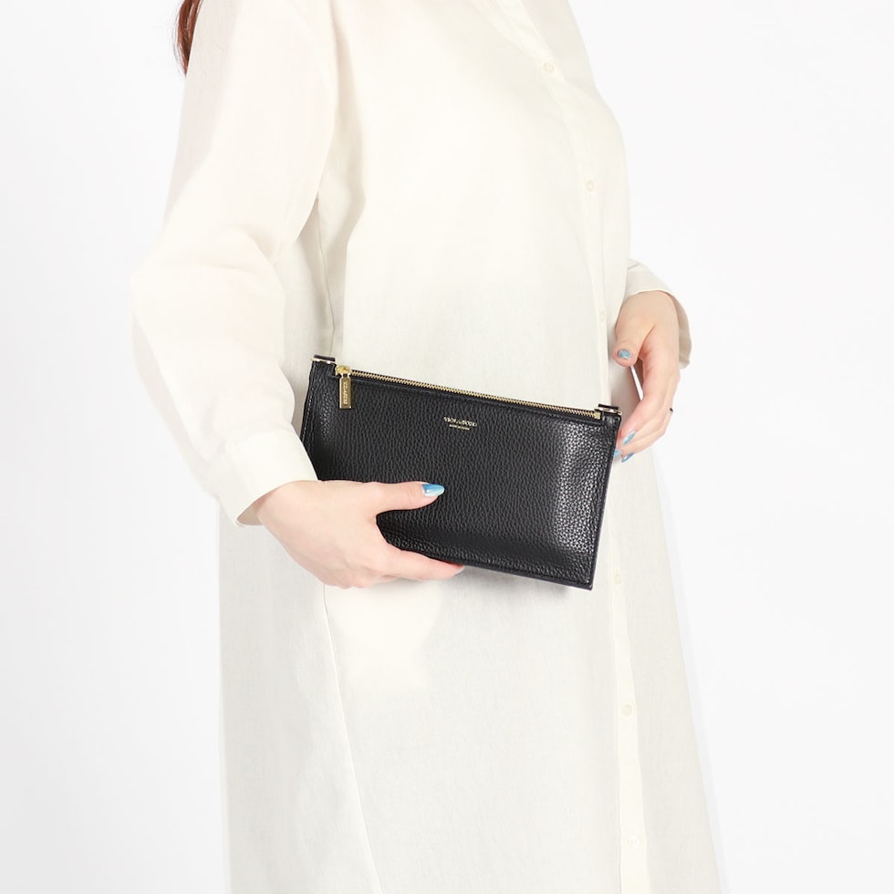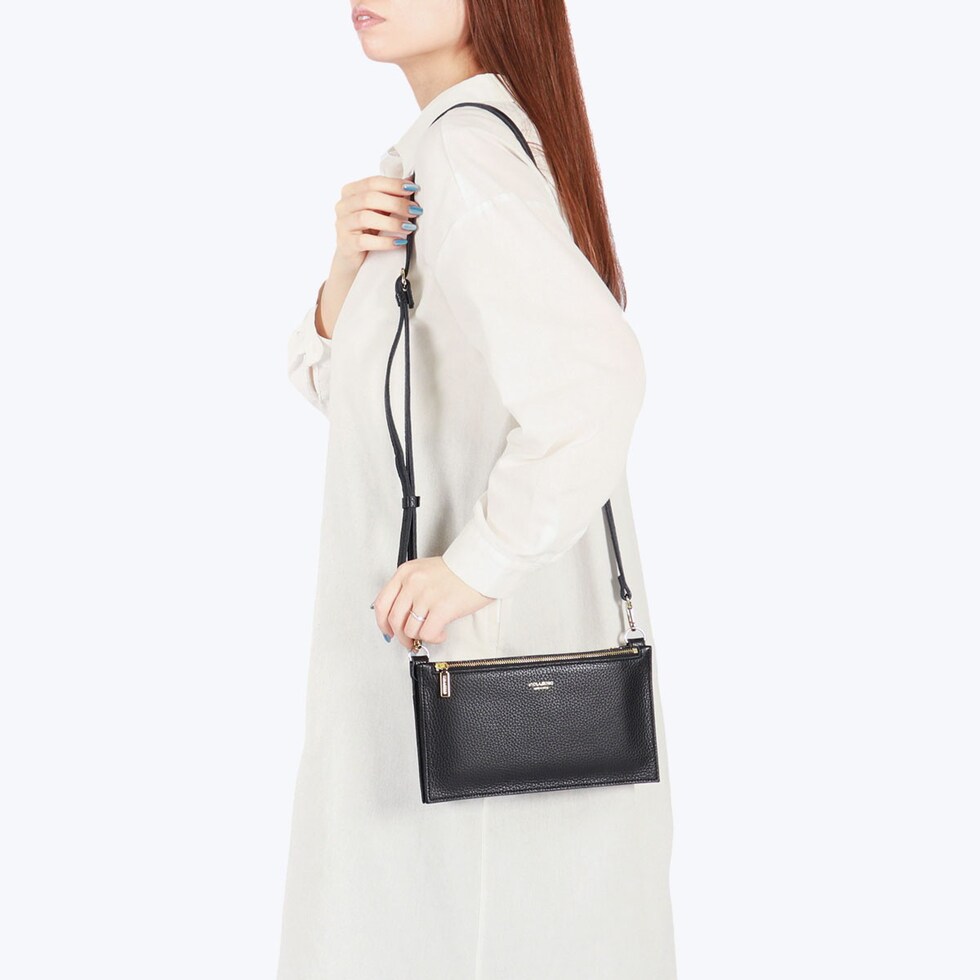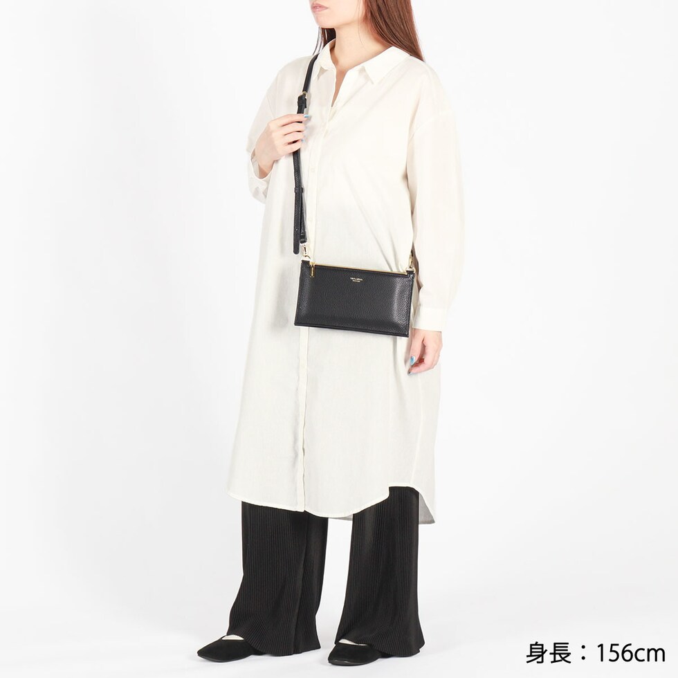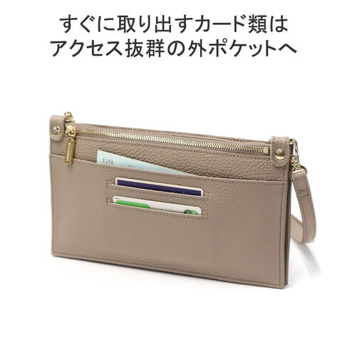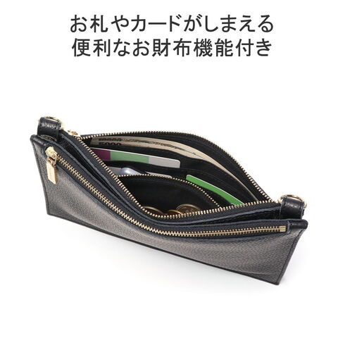 持っているだけで雰囲気に上品さをプラスしてくれる、イタリアン型押しレザーで仕上げたポシェットです。お出かけの妨げにならないコンパクトなサイズ感に、なんとお財布機能を搭載!最低限のお札やカードに加え、スマホやエコバッグなどの必需品も入るため、これ1つで身軽な外出が可能です。