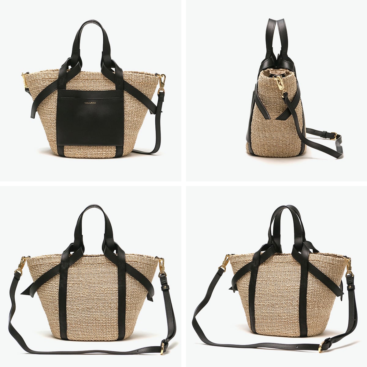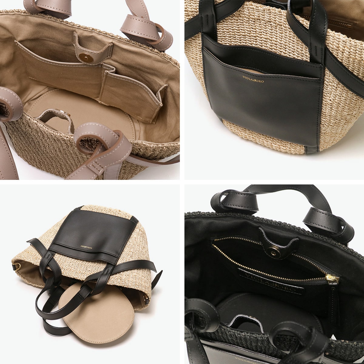 【正規品】 ヴィオラドーロ トートバッグ レディース 小さめ ショルダーバッグ VIOLAd'ORO かごバッグ かご バッグ ミニ 斜めがけ 本革 レザー 春 夏 2WAY MIRO アバカ製 2WAYレザーポケットトート V-8717
