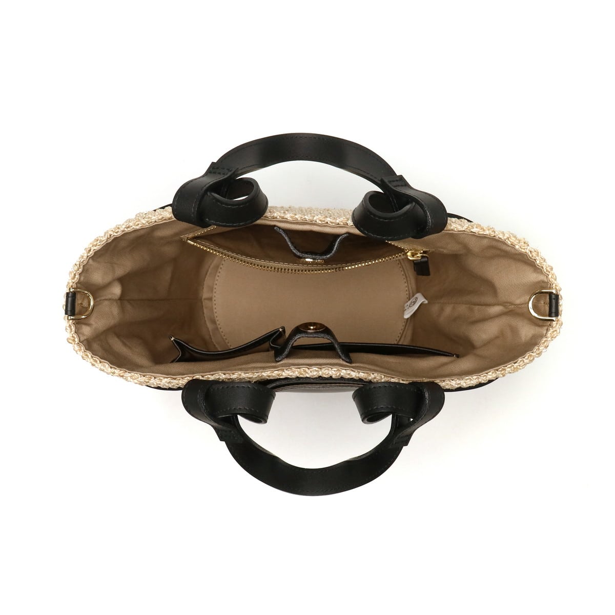 舟形のアバカボディにポケットとハンドルのデザインがポイントになったトートバッグ。上品かつ可愛らしいデザインで、きれいめにもカジュアルにもマッチします。長財布など身の回りの物が収納できる普段使いに便利なサイズ感も嬉しいポイントです。