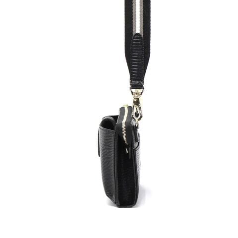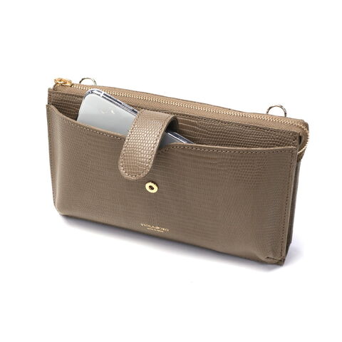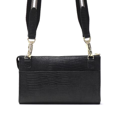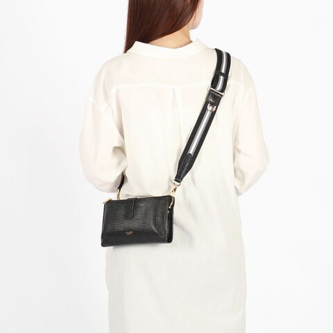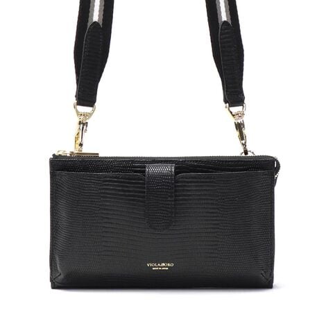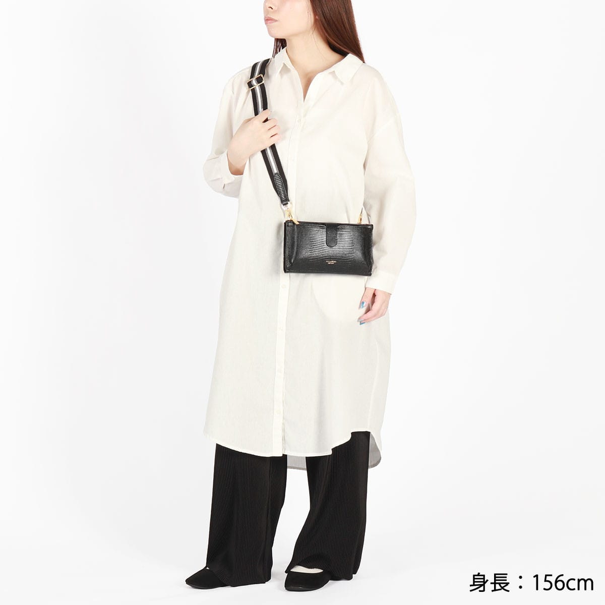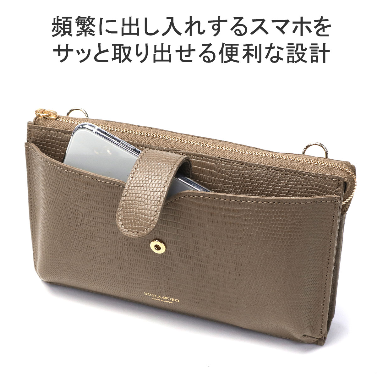 リザードの型押しレザーが上品なスマートフォンポシェットです。正面にはスマホが収納できるポケットを、背面にはカードスリットやジップポケットを配置し、最低限の荷物で外出したい方やキャッシュレス派にオススメのつくりに。視認性にも優れているため、必要な物がサッと取り出せる点も魅力です。