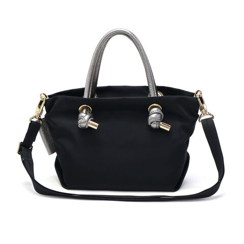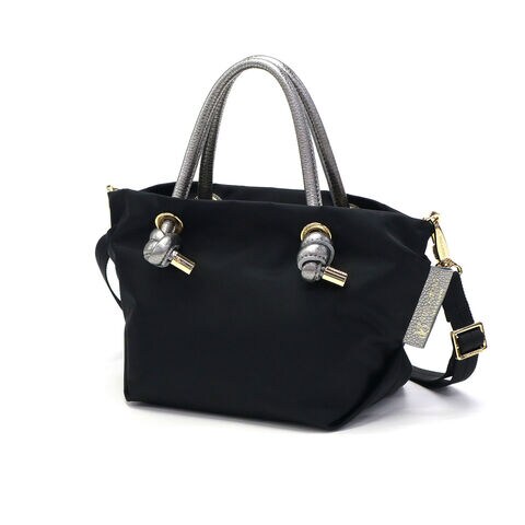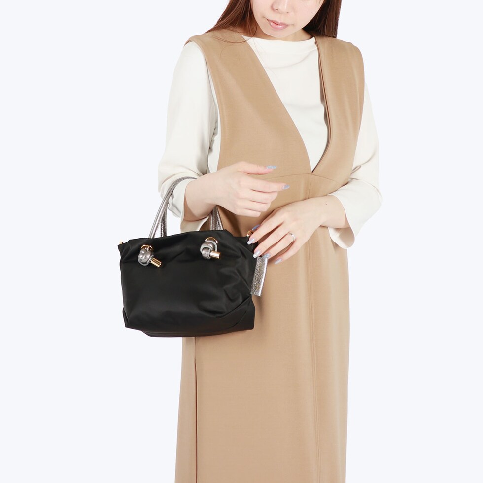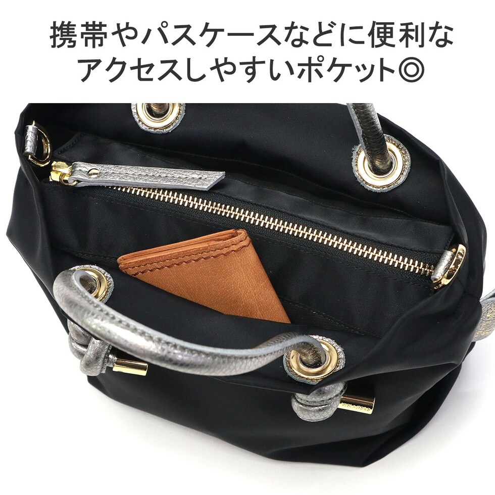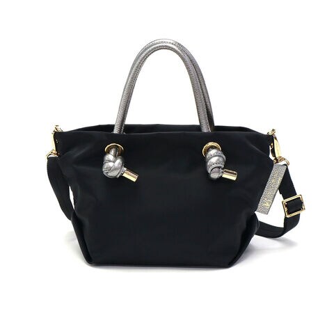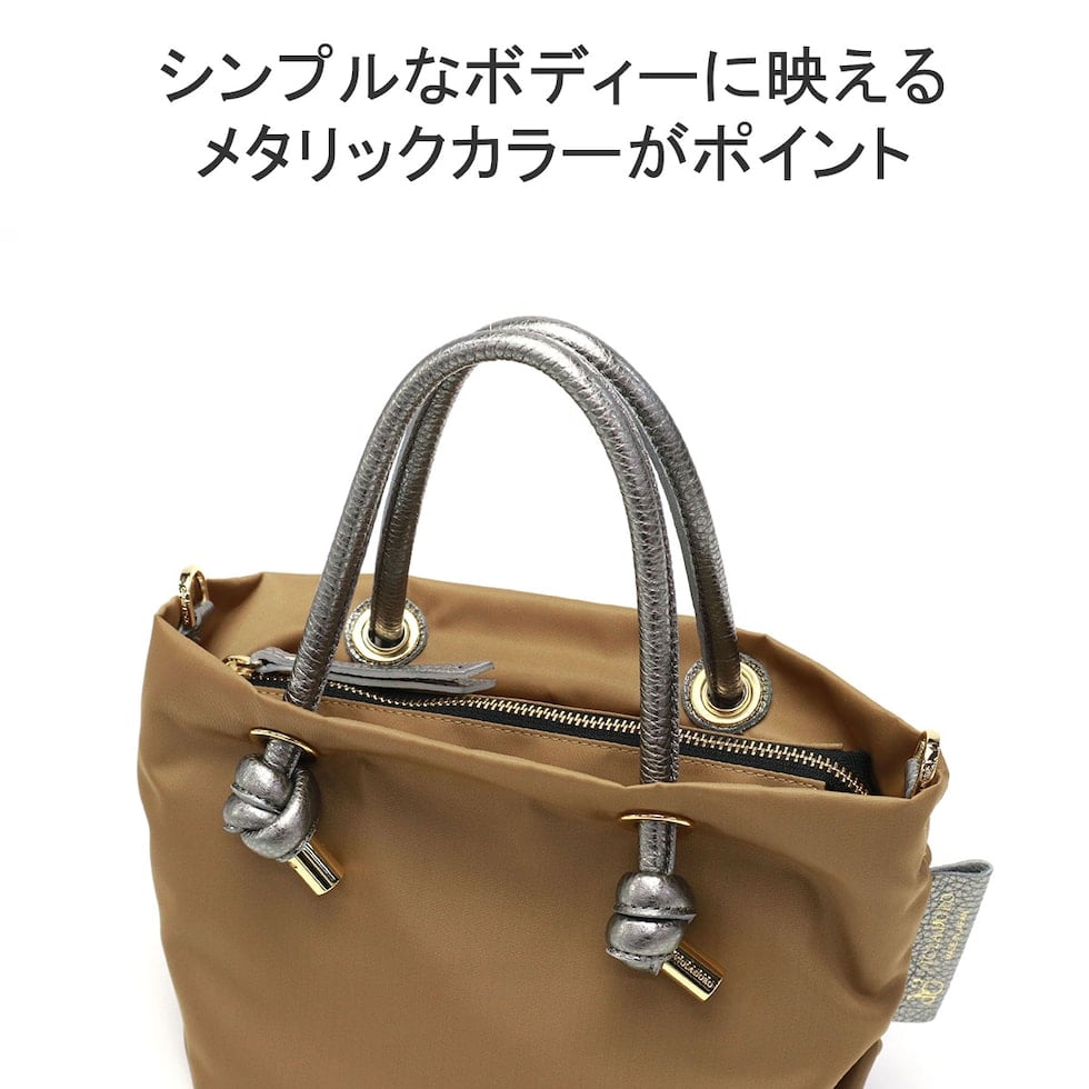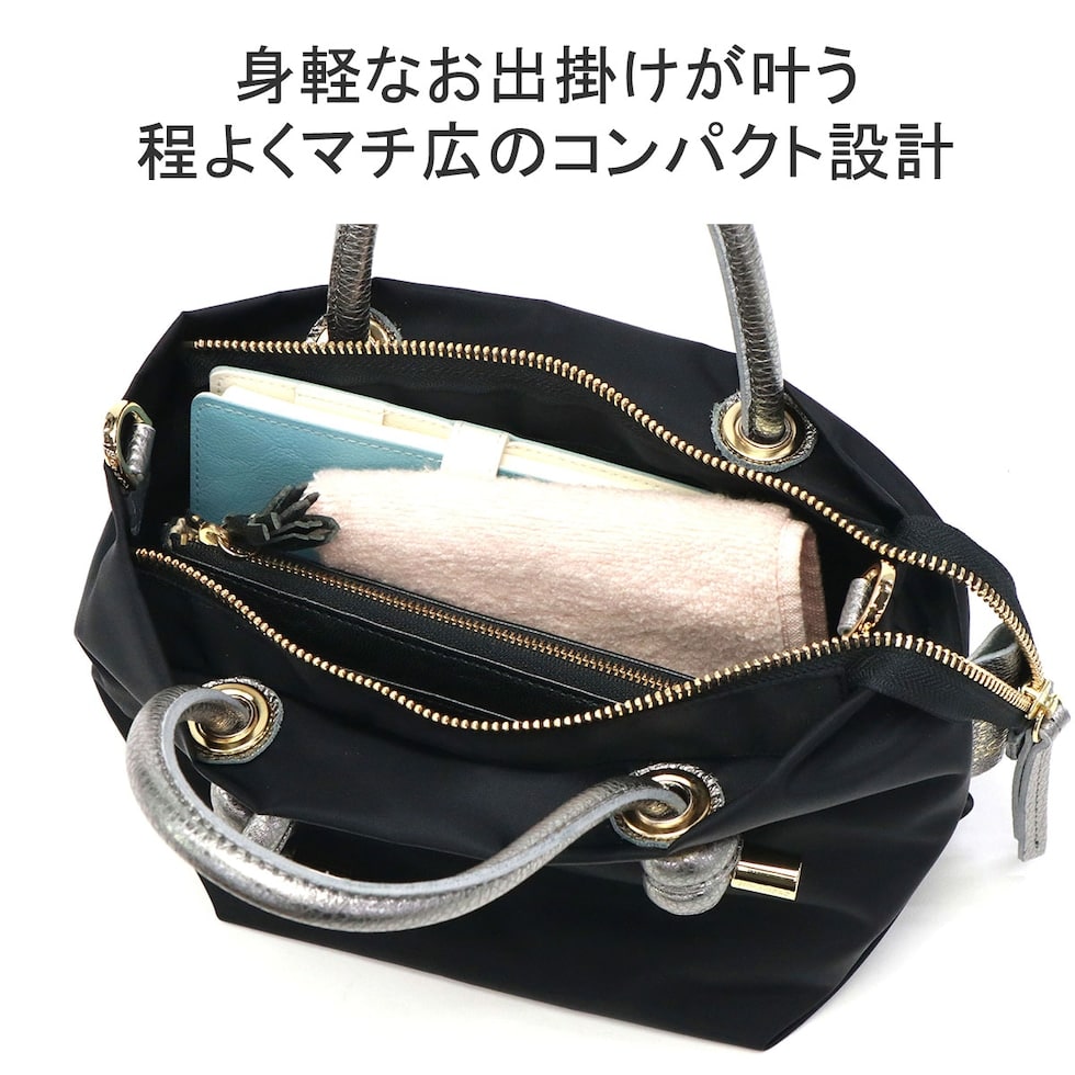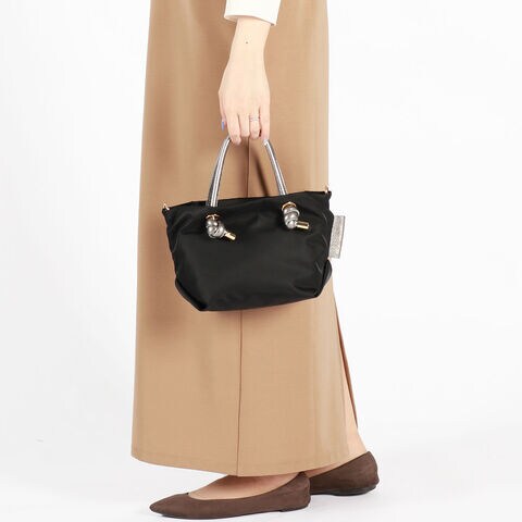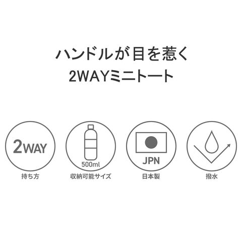 シンプルなデザインにノットハンドルがアクセントになった2WAYトートバッグ。メインルームは長財布が収納できるほどのサイズ感で、収納部の両側に設けたポケットにはスマホなどを収納可能。小ぶりなルックスながら、必需品以上の収納力を備えているため、通勤シーンやサブバッグなどにもおすすめです。弱撥水性を備えているため、お手入れしやすく軽量に持ち運べるところもポイントです。