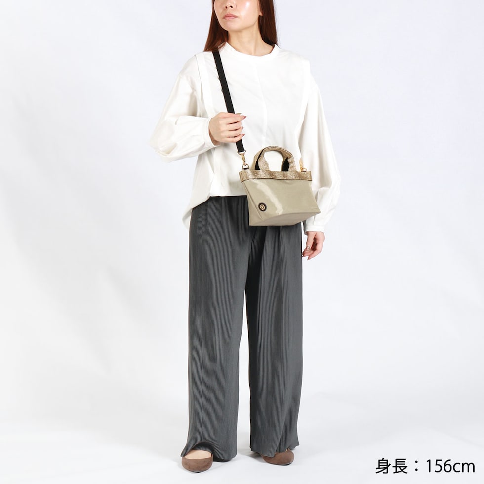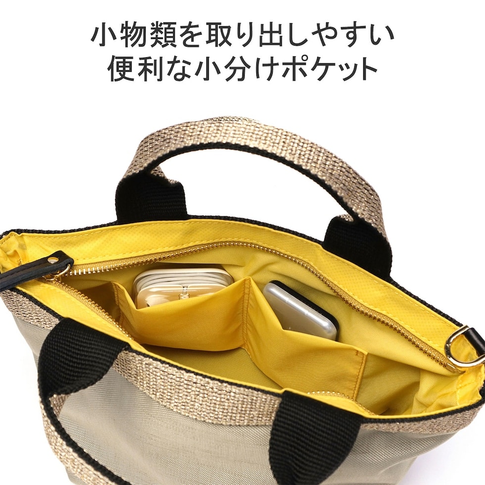 シンプルでモダンな雰囲気が特徴の『GINO/ジーノ』の2WAYトートバッグ。本体にはナイロン素材を採用し、デザインのアクセントにもなっているイタリア製のラメテープが女性らしい雰囲気を演出。ファスナー開閉でマチもたっぷりあり、利便性・収納力に優れ、オンオフ問わずご使用いただける大人カジュアルな仕上りとなっています。