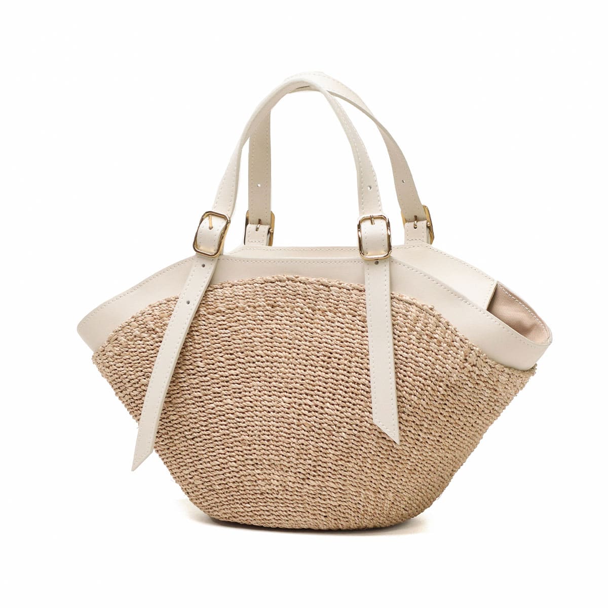 天然素材のナチュラルな風合いとアクセントになったレザーが魅力、舟形のカゴバッグです。アバカで編み上げたボディがカジュアルさを感じさせながらも、優雅な素材感が上品な雰囲気を演出してくれます。きれいめコーデはもちろん、リラックス感のあるスタイルにもなじむため幅広いシーンでお使い頂けます。