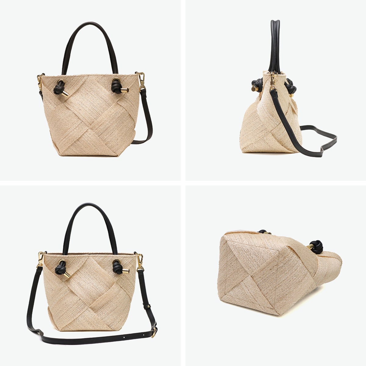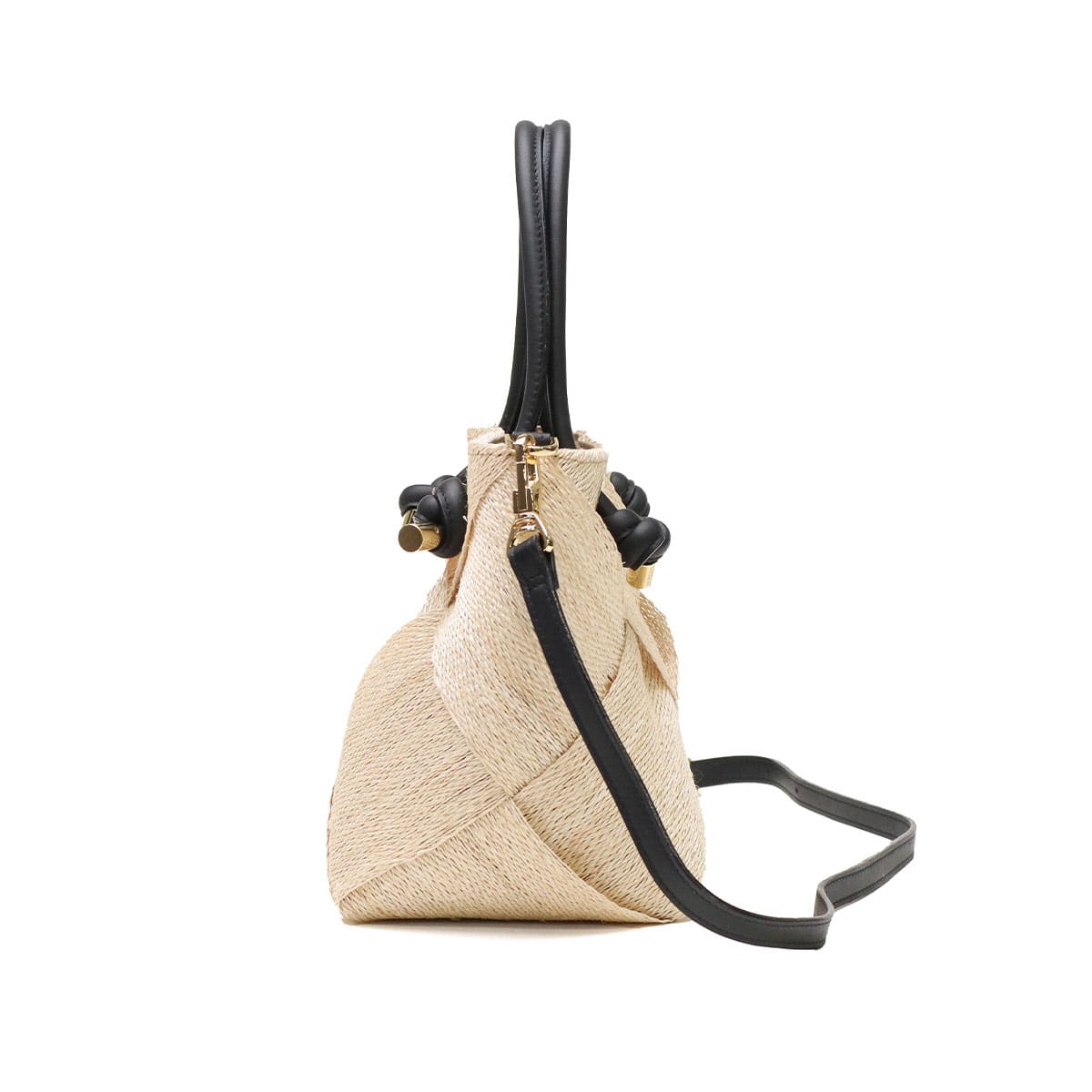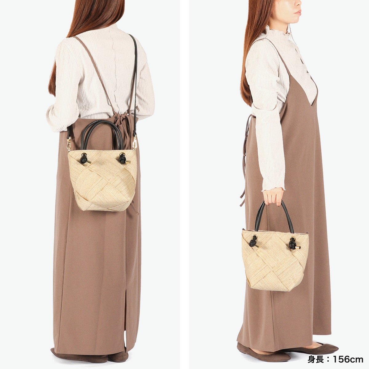 季節感ある天然素材のアバカに結び目デザインのレザーハンドルを合わせて、上品な印象を与えてくれる2WAYかごバッグ。テープ状に織ったアバカをざっくりと大きめに編んだメッシュデザインは軽くて涼し気。付属のストラップで斜めがけもでき、きれいめにもカジュアルにも合うデザインがオンオフに活躍してくれます。
