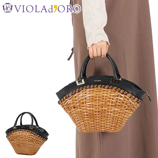 - > 【正規品】 ヴィオラドーロ トートバッグ レディース かごバッグ 大きめ レザー VIOLAd'ORO かご バッグ トート ハンドバッグ 上品 きれいめ かわいい おしゃれ スプリットラタン 牛革 春 夏 MIRO V-8876