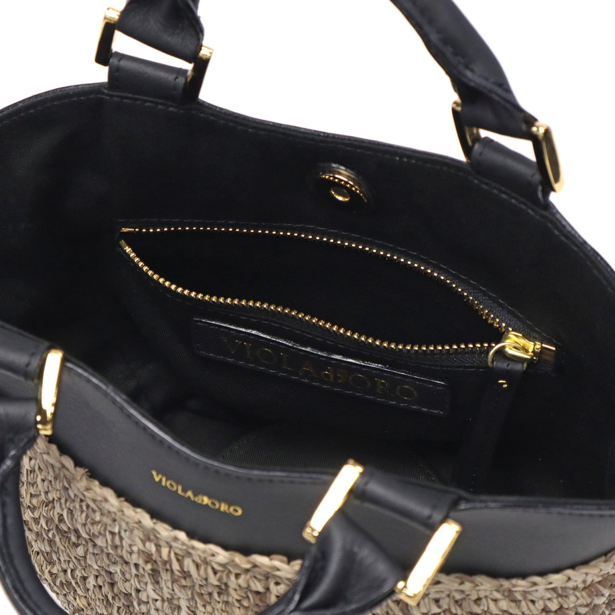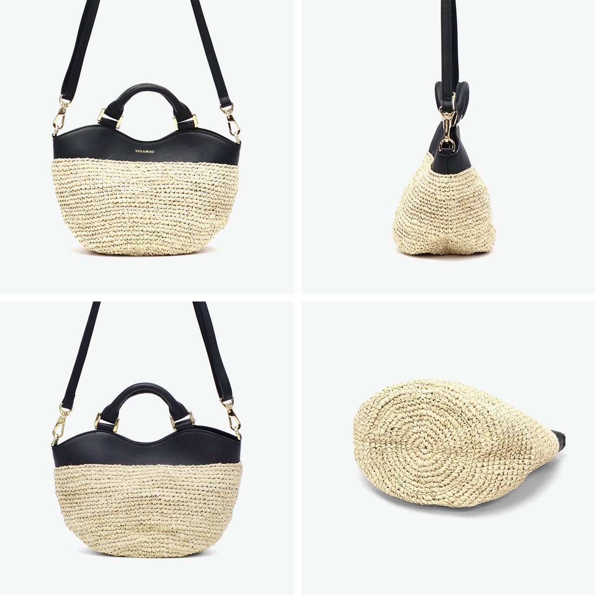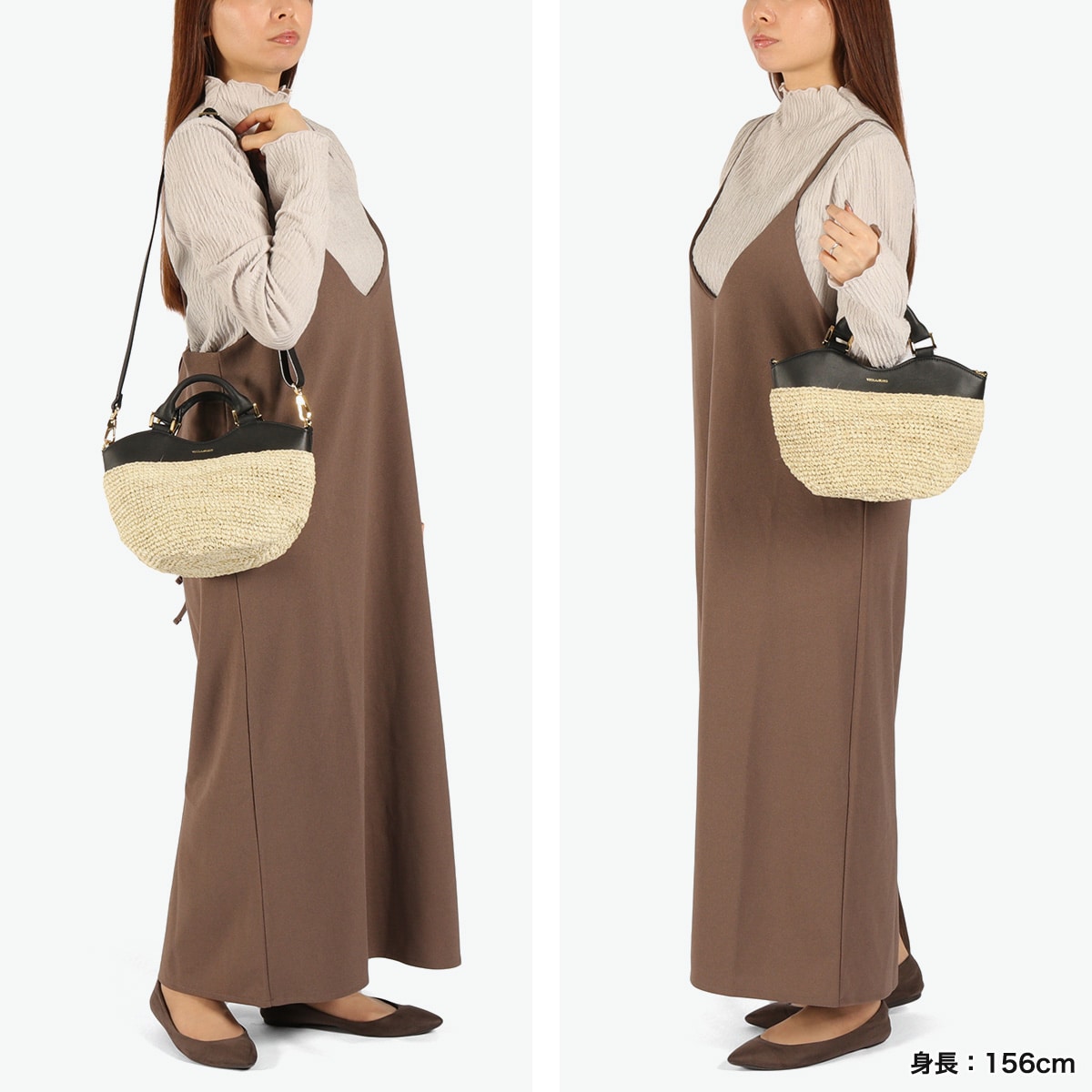 ラフィアの柔らかな雰囲気に、程よくレザーを効かせて上品に仕上げた2WAYトートバッグ。コロンとした丸みのあるフォルムで可愛らしい印象に。コンパクトな見た目ながら、長財布やポーチなど身の回りのものが収納でき、ポシェットとしても使える使い勝手のよいアイテムです。
