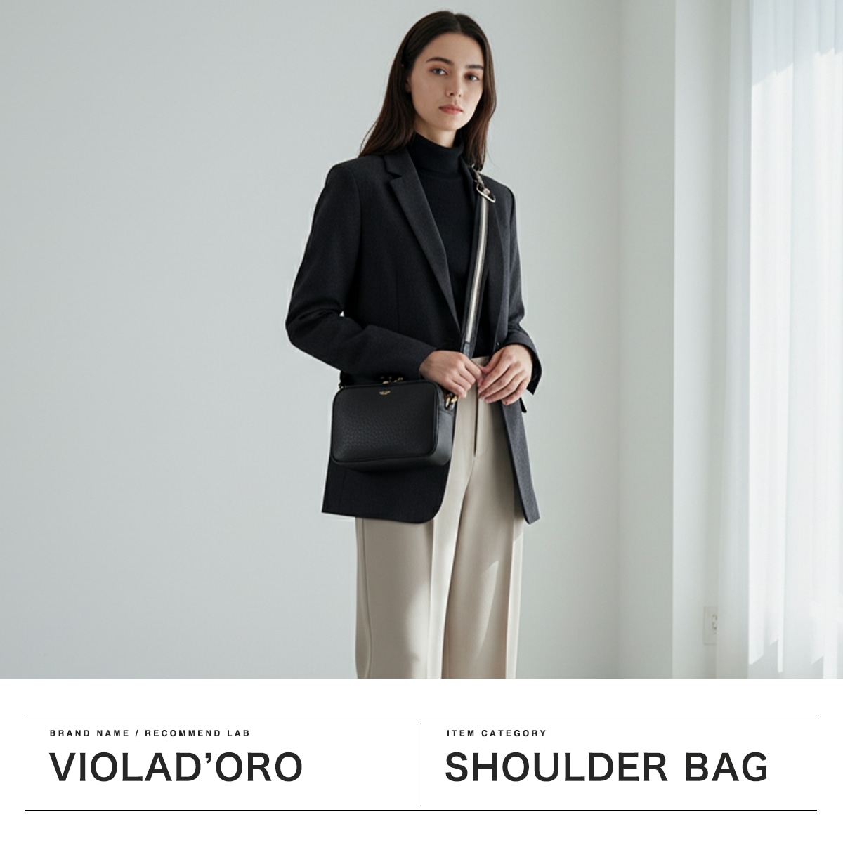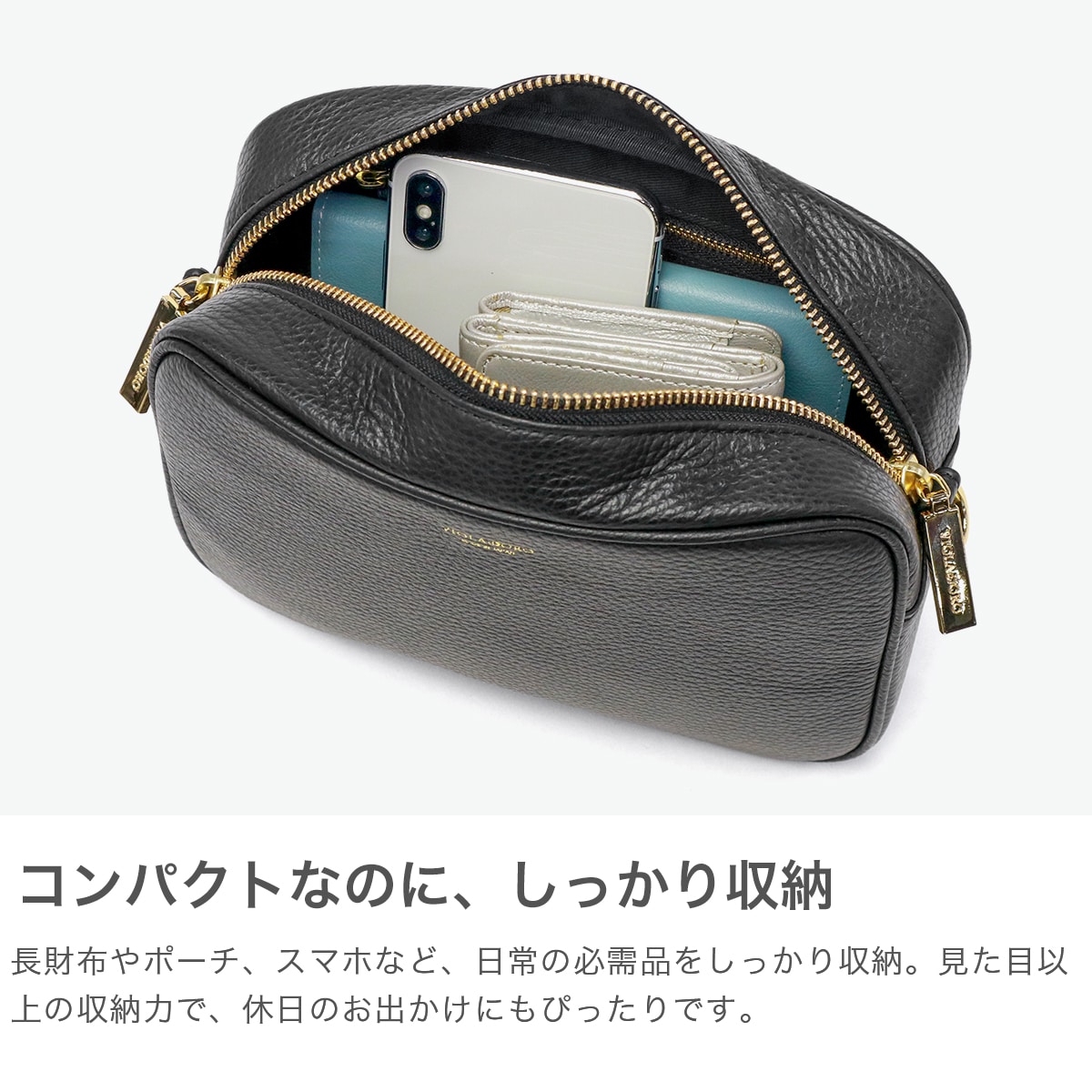 柔らかく上品な艶感のイタリアンレザーを使用したショルダーバッグ。アクセントになるアイビーテープのストラップは、短めにも調整可能で、気分やコーデに合わせてアレンジ自在。長財布やポーチが収まる実用的なサイズ感で、上品さと機能性を兼ね備えたデイリーに活躍するアイテムです。