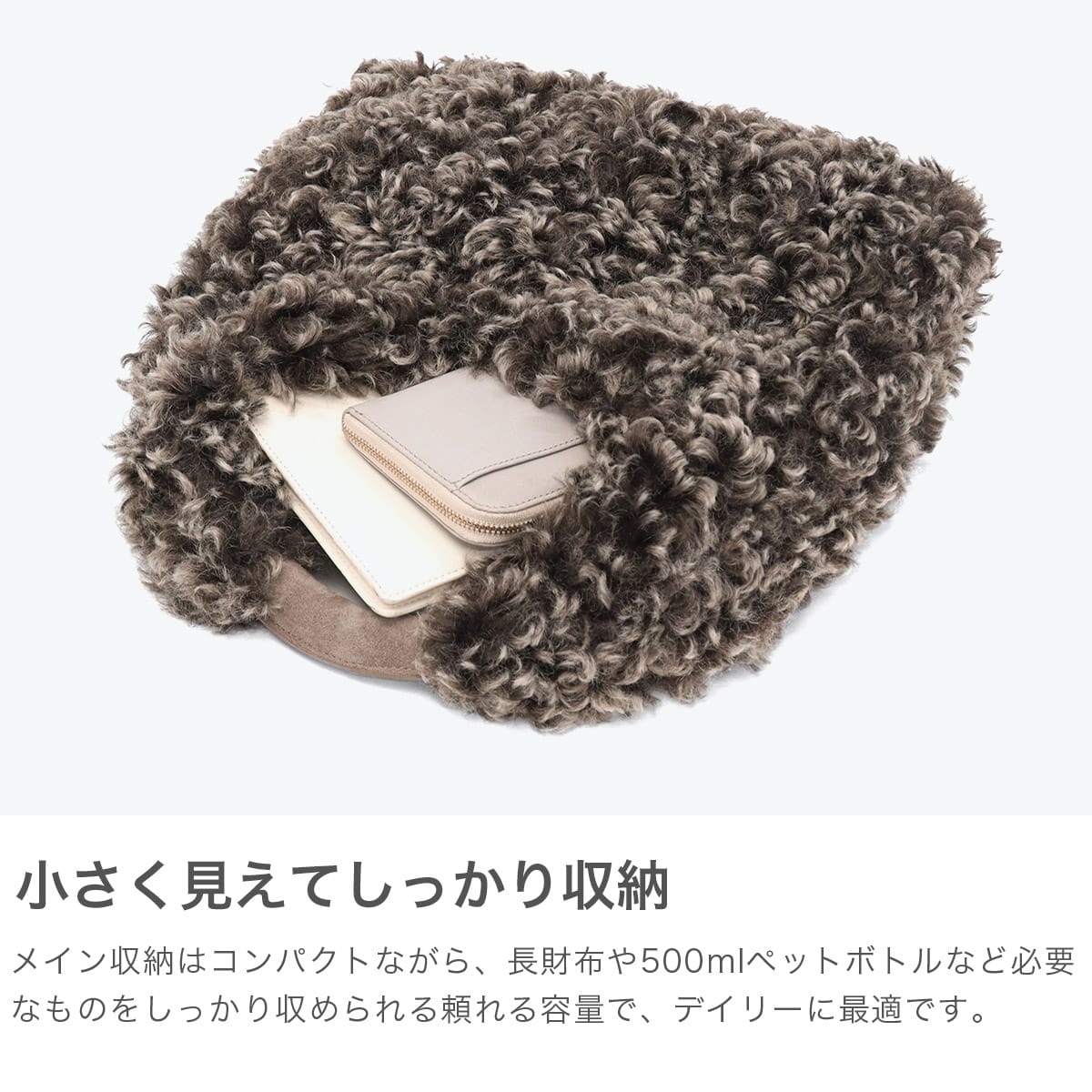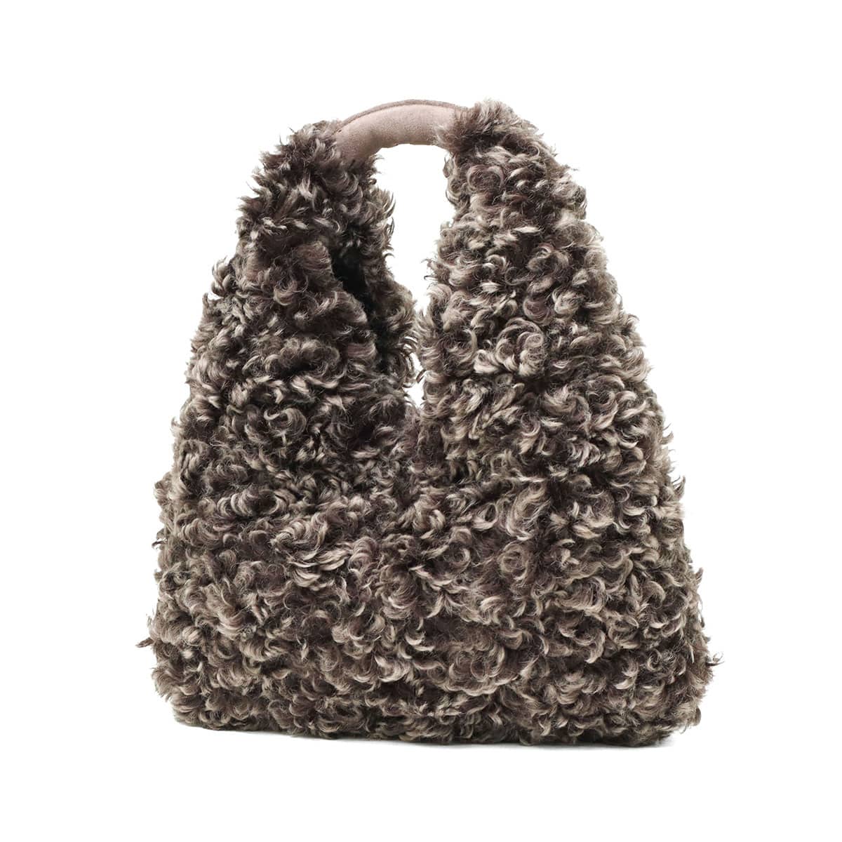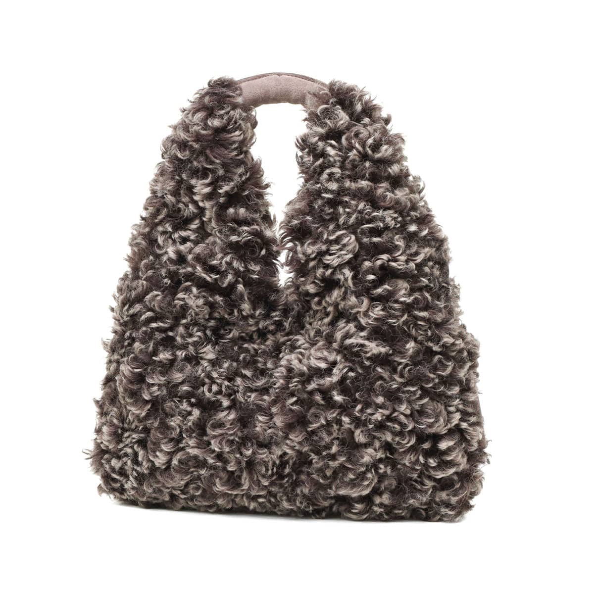 ふんわりとしたカールが魅力のラムタイプのエコファーホーボーバッグ。秋冬にぴったりのデザインで、スタイルのアクセントになる存在感あるアイテム。開口部は少し狭いもののA5サイズや長財布が収納できるので、普段使いにちょうどいいサイズ感となっています。