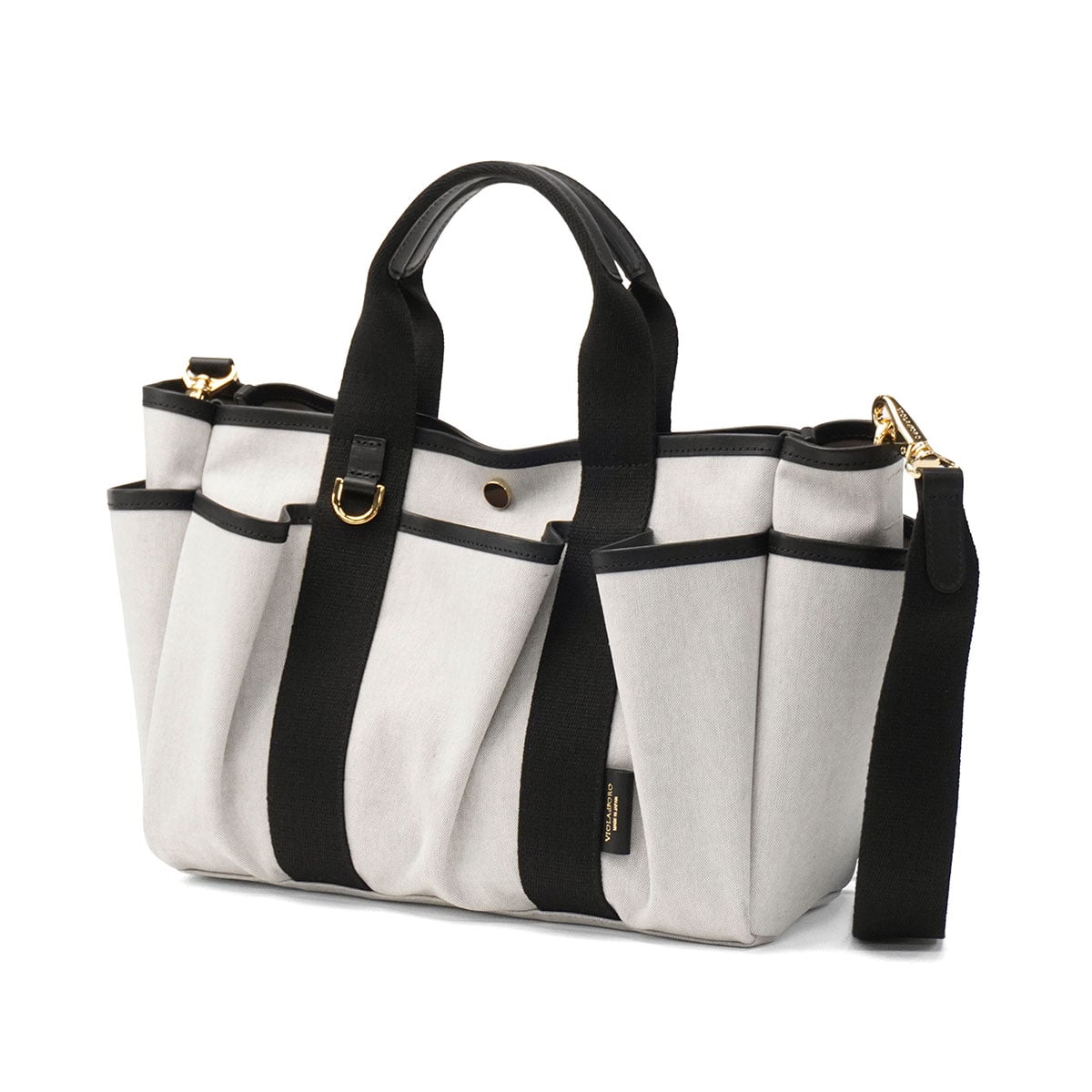 ガーデニングツールを入れるバッグから着想を得た、たっぷりポケットが魅力のキャンバストート。ヴィンテージライクな風合いの生地に上質なヌメ革を組み合わせ、ラフすぎず上品さも感じられる絶妙なバランスに仕上げました。長財布やポーチがしっかり収まる収納力に加え、取り外し可能なポケットやアウトポケットで整理整頓も快適。ショルダーストラップ付きの2WAY仕様で、シーンに合わせた持ち方が楽しめる大人のためのバッグです。