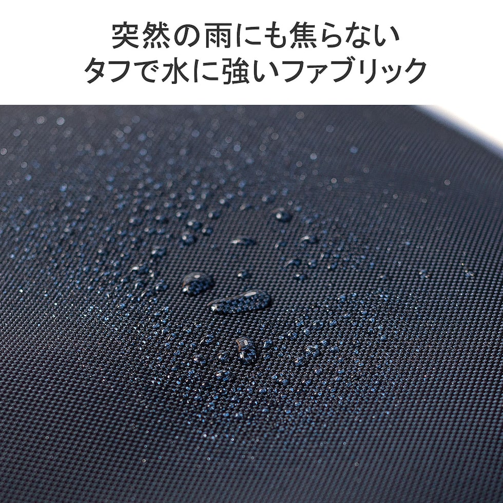 詳細説明 フロントには深さの異なる止水ジップ付きポケットに加え、排水機能付き独立ポケットを配置。濡れた折り畳み傘や結露したペットボトルなどを収納した際に、下部のメッシュ部分から水が排水され溜まらない仕様になっています。