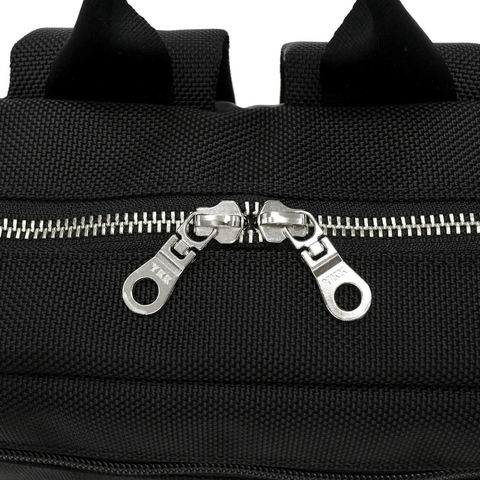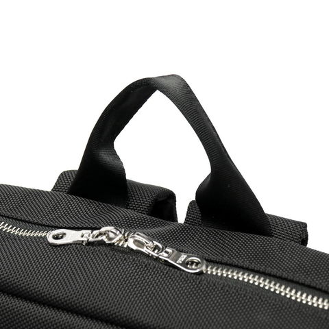 フロントの上下に配置されたポケットは、上部を浅めに、下部を深めに設計しているため、直感的に使うものを仕分けでき取り出すときに迷うことがありません。また、背面には背負いながらでもアクセスしやすいポケットを装備し、頻繁に出し入れする財布やパスケースを入れておくのに便利です。