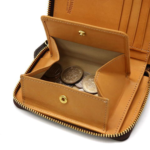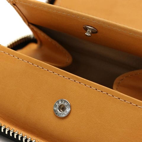 本体には、小銭入れやカードポケット、お札入れ、フリーポケットなど基本的収納機能をしっかり設け、スリムな見た目以上に収納力があります。収納口には留め具を設けないつくりとなっているので、開閉をスムーズに行えるのも使いやすさのポイントです。