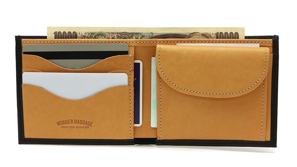 ワンダーバゲージ 二つ折り財布 WONDER BAGGAGE 財布 本革 ミニ財布 薄型 小銭入れ 小さい メンズ 日本製 WB-A-010