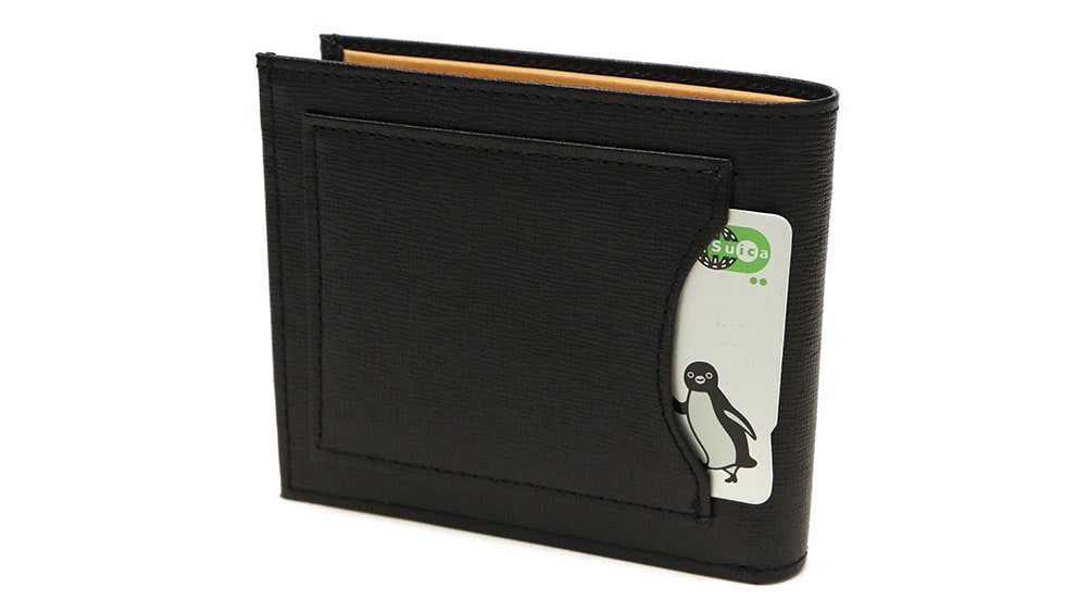 本体背面側にはカードポケットを装備しており、交通系ICカードやプリペイドカードなどの収納に役立ちます。現代の生活サイクルに溶け込んでいる非接触カードの利用に配慮し、お会計がストレスフリーに行える機能的なデザインとなっています。