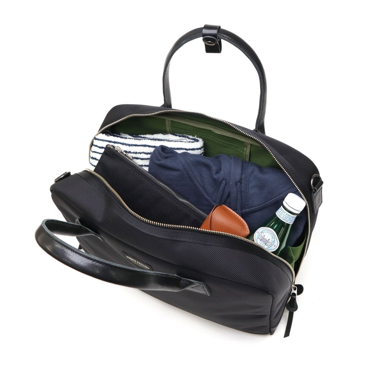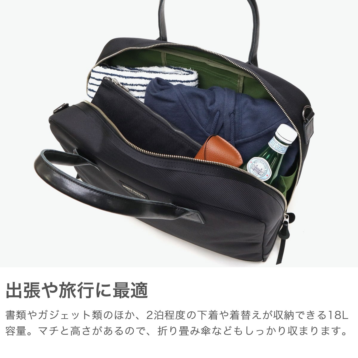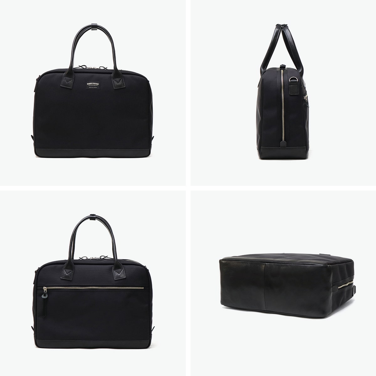 究極の耐久性を持つバリスターナイロンと、厚口オイルシュリンクレザーが持つ存在感が印象的な大人のボストンブリーフです。ボストンバッグの収納量とブリーフケースの機能性の両方を兼ね備える贅沢なアイテム。別売りのショルダーベルトを装着すると2WAY仕様に。働き方が多様化する現代において、大活躍すること間違いなしです。