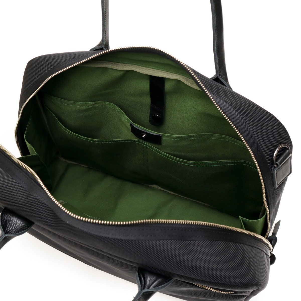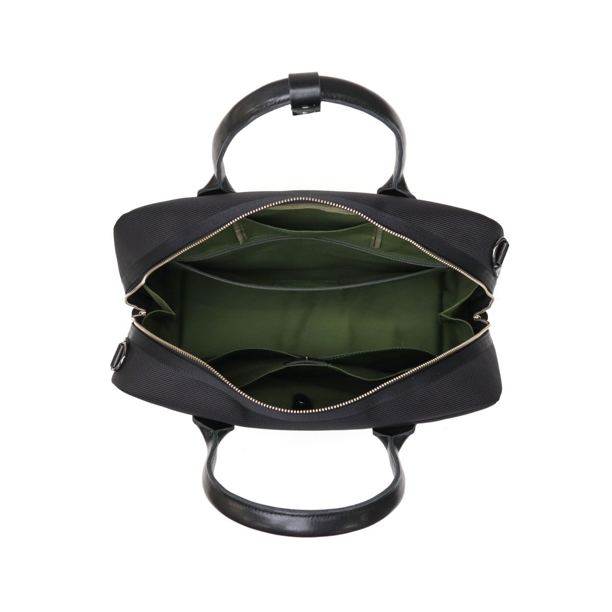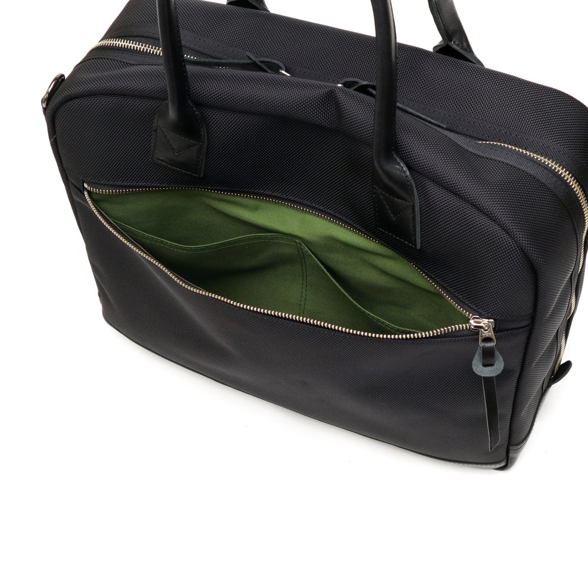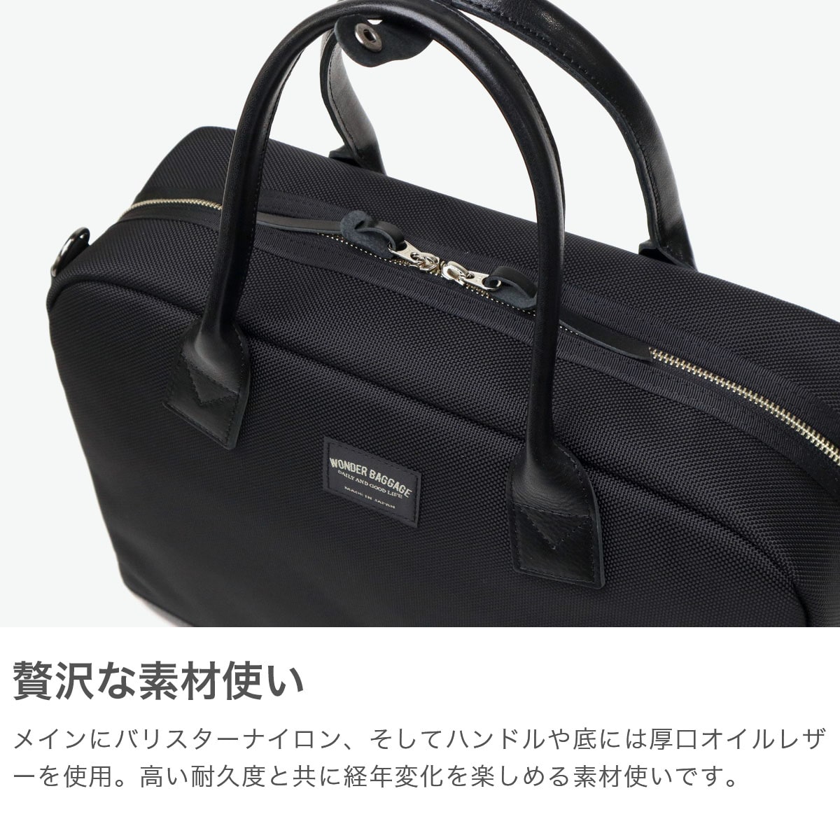 究極の耐久性を持つバリスターナイロンと、厚口オイルシュリンクレザーが持つ存在感が印象的な大人のボストンブリーフです。ボストンバッグの収納量とブリーフケースの機能性の両方を兼ね備える贅沢なアイテム。別売りのショルダーベルトを装着すると2WAY仕様に。働き方が多様化する現代において、大活躍すること間違いなしです。