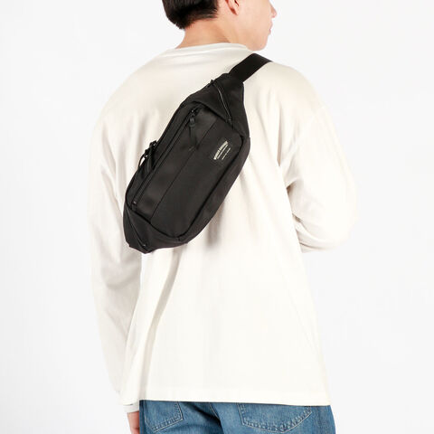 オンオフともに使うことを想定してデザインされた「GOODMANS / グッドマンズ」シリーズの小型ウエストバッグです。メイン素材にはバリスターナイロン、パーツ部には経年変化が楽しめる上質なオイルドレザーを使用。たすき掛けで着用した際に丁度よく身体に沿うアシンメトリーな設計で、開閉時のストレスを可能なかぎり軽減することを目指しました。