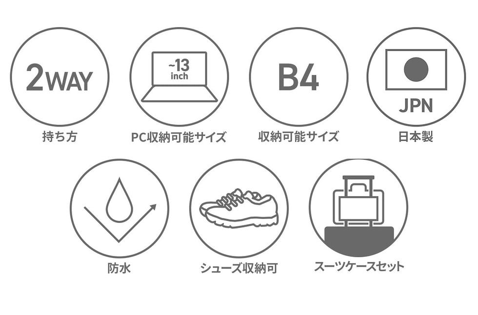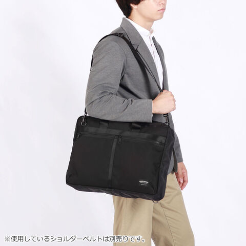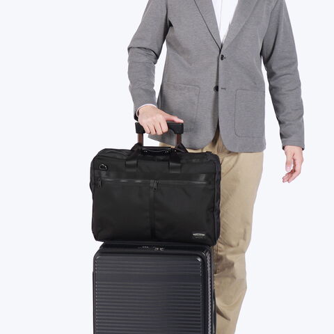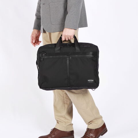 防水仕様のスタンダードな2WAYブリーフ。メイン収納に加え、靴や薄手の衣類が入る大きなジップポケットを設置。内側に膨らむ構造のため外見に影響せず、スマートな印象を保ちます。さらに別売りのショルダーストラップを取り付けて3WAYでの使用も可能。出張や仕事終わりのジムなど幅広いシーンで頼れるアイテムです。