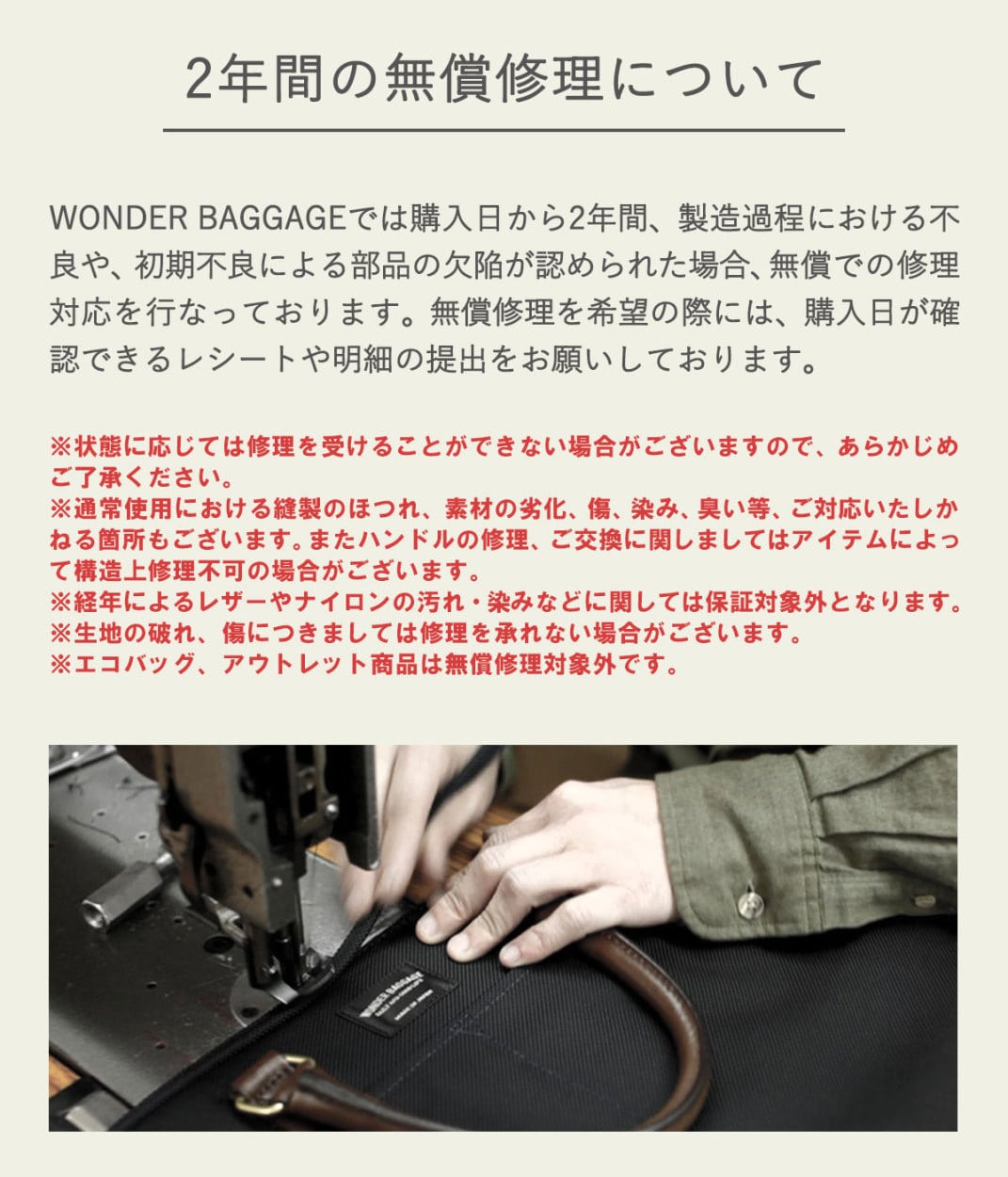 ・水濡れ(雨・汗など)や日焼けによる色落ち、退色は避けられませんので、夏季、雨天でのご使用、また淡い色の服装に合わせる場合は十分にご注意ください。
